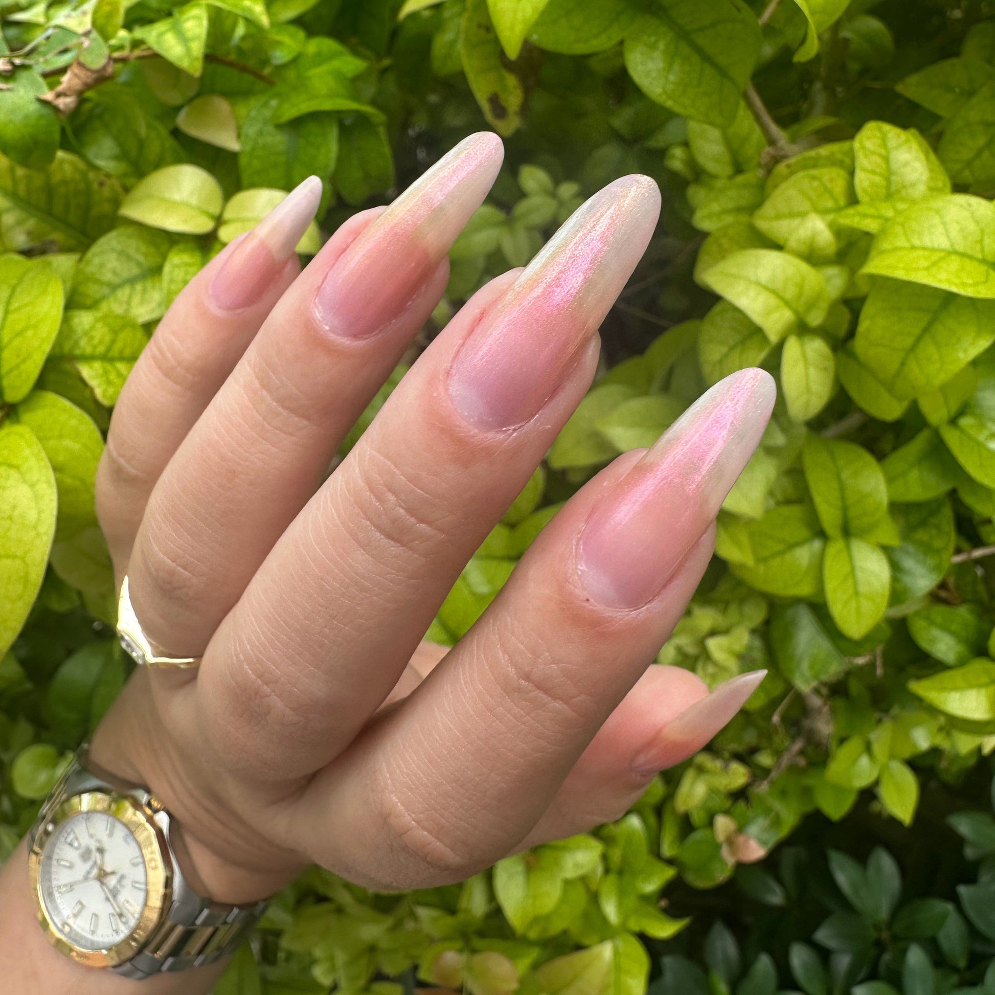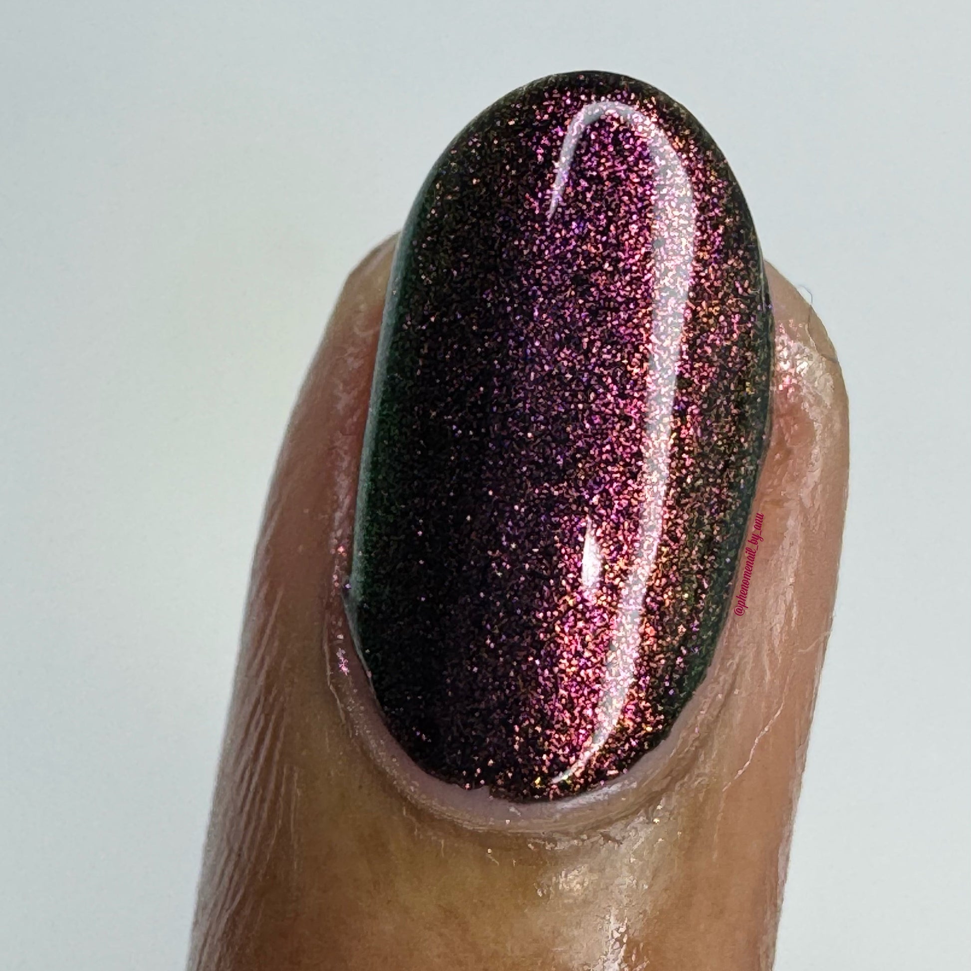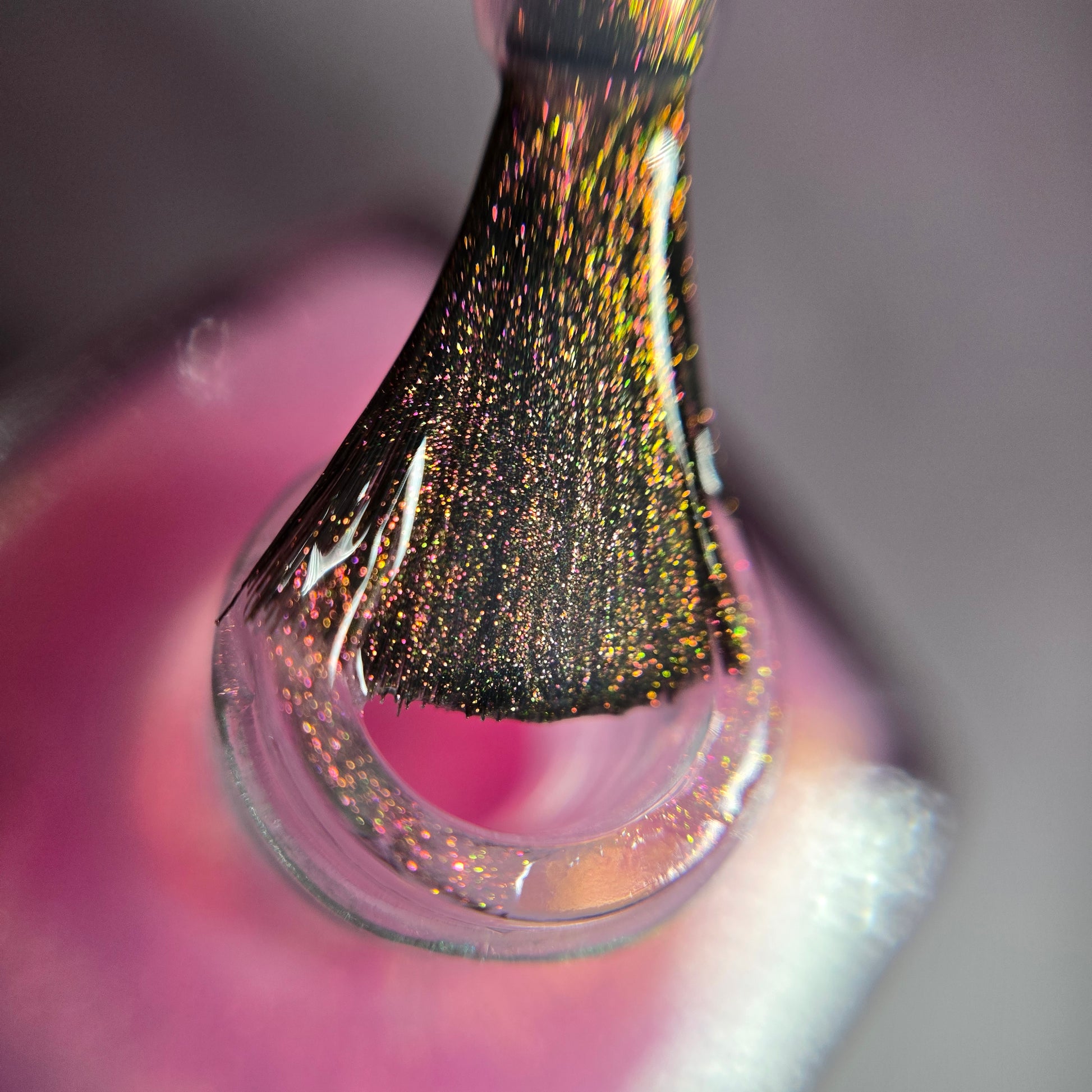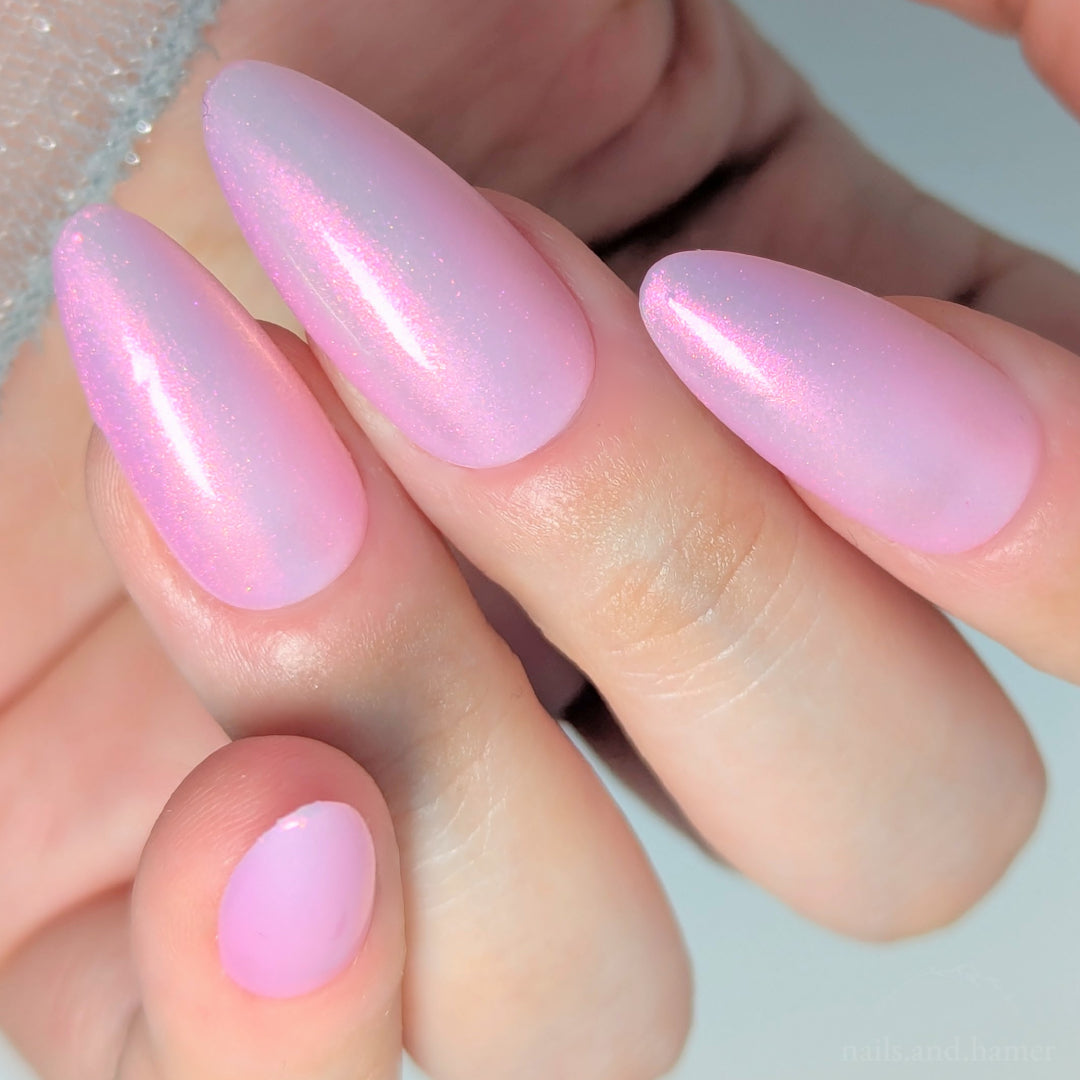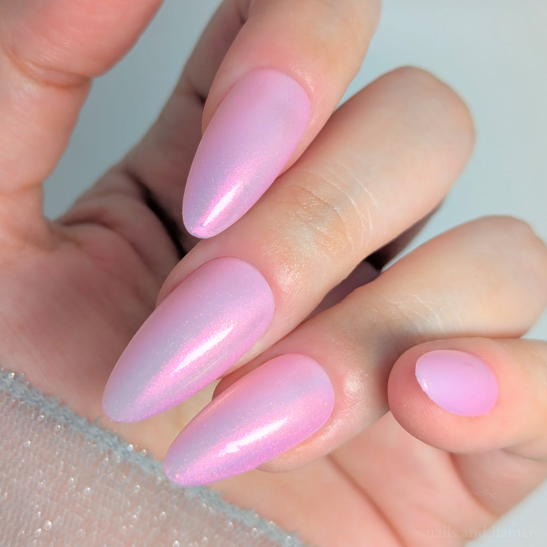 Always Mine... is a semi-sheer cherry blossom pink polish alight with pink/orange/gold/lime multichrome shimmer.