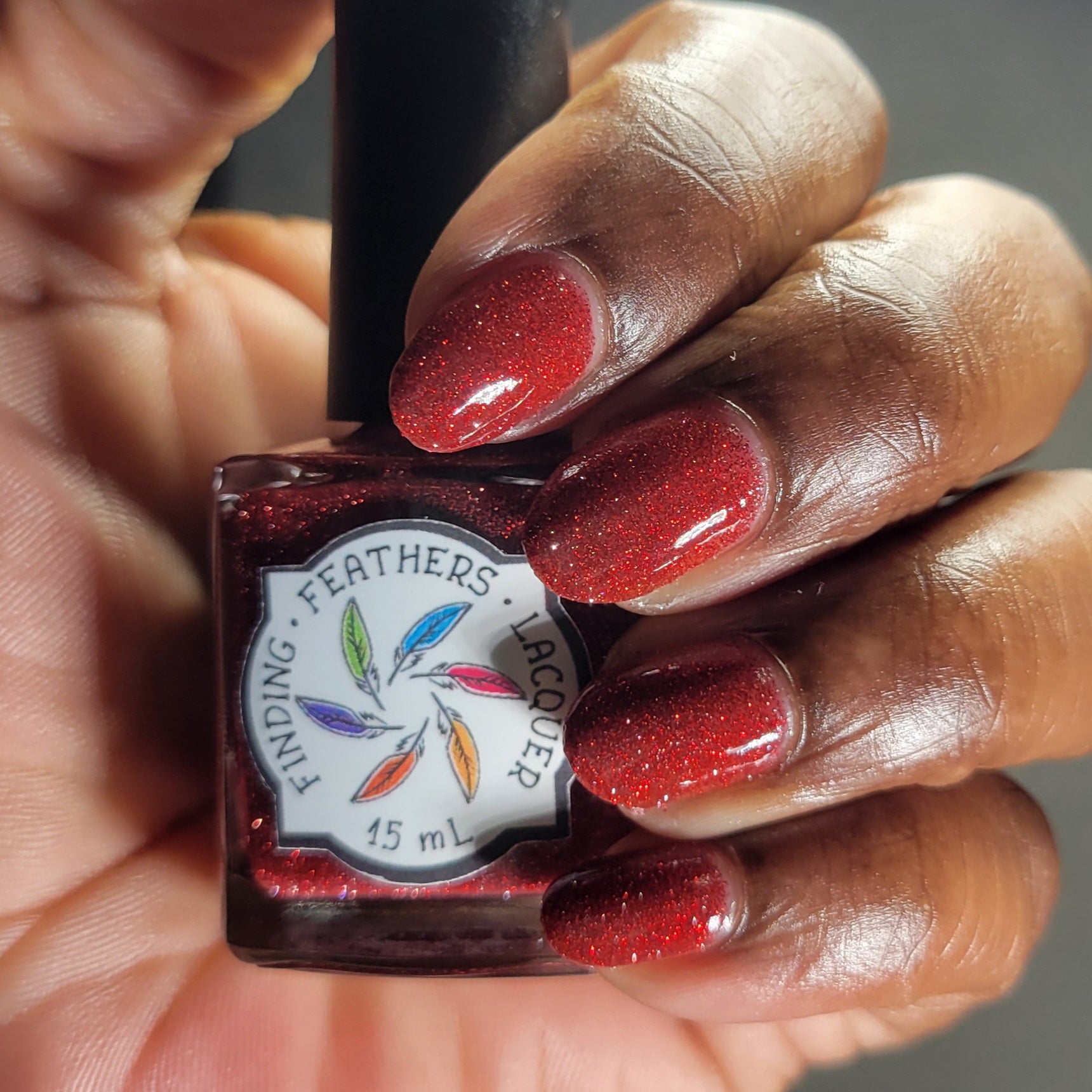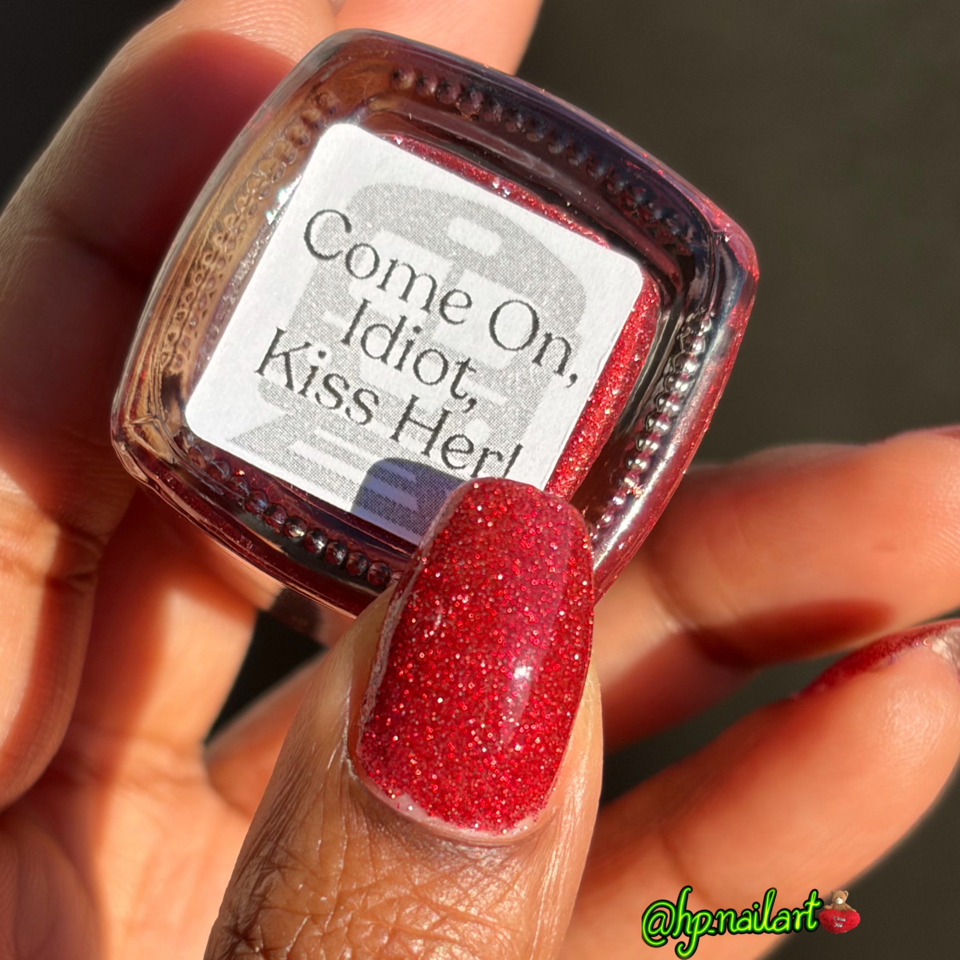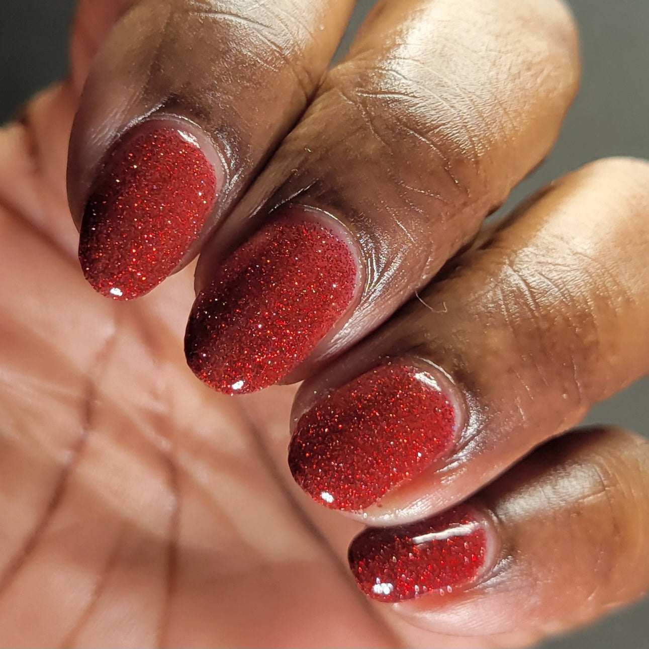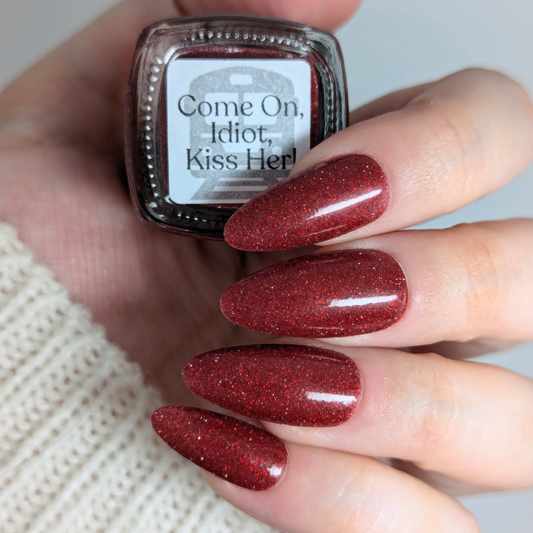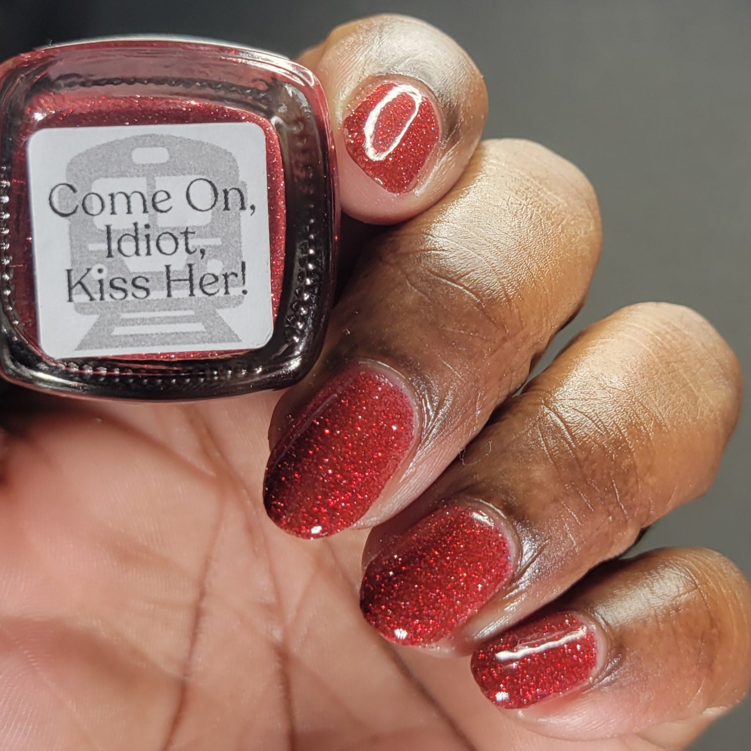 Come On, Idiot, Kiss Her! is a gorgeous garnet red jelly base filled with luxurious mini ruby red metallic and reflective glitters. Reflective glitters by nature are extra "thirsty", and we highly recommend FFL's Serenity Smoothing Top Coat BEFORE topping with FFL's True Tranquility QDTC for a smooth finish.
