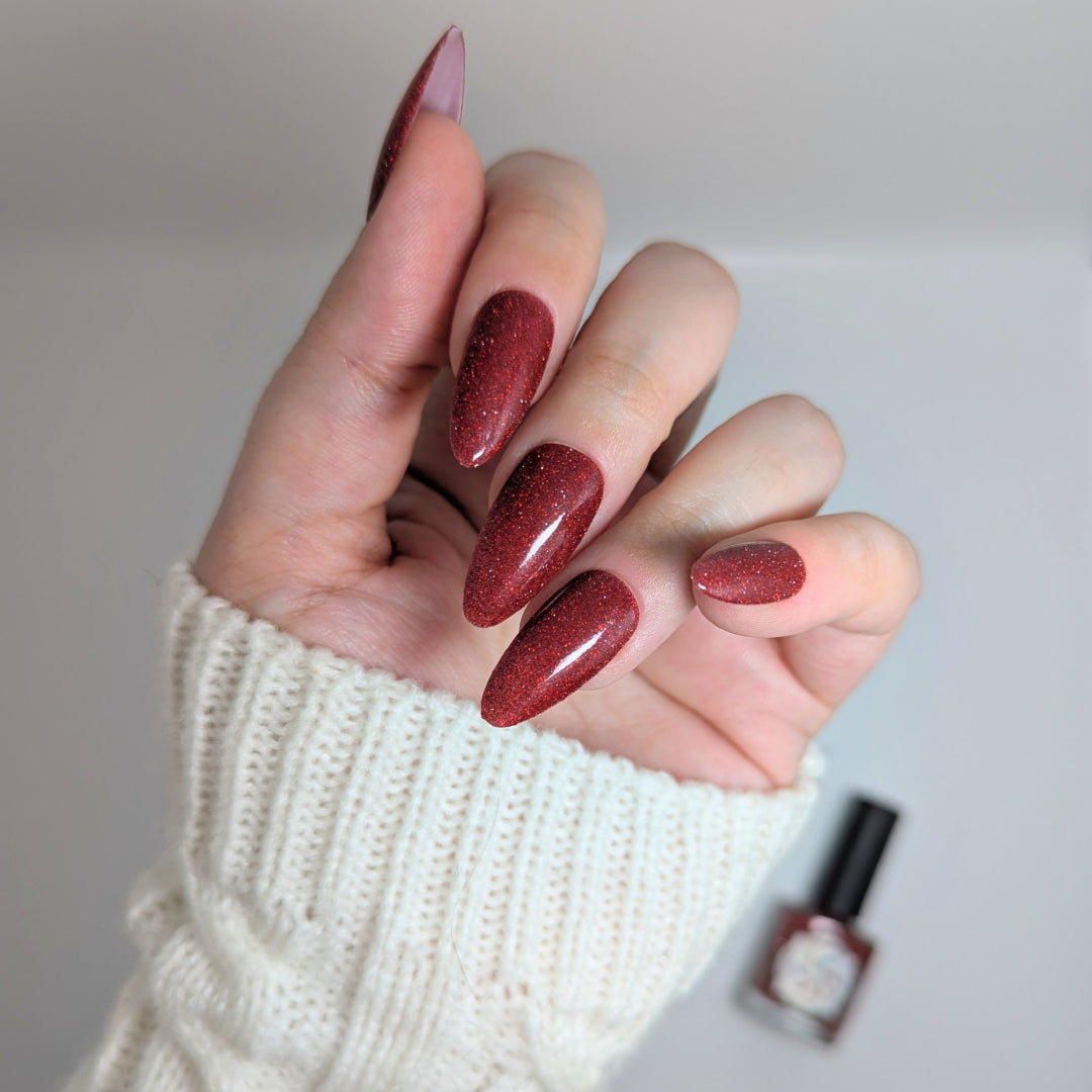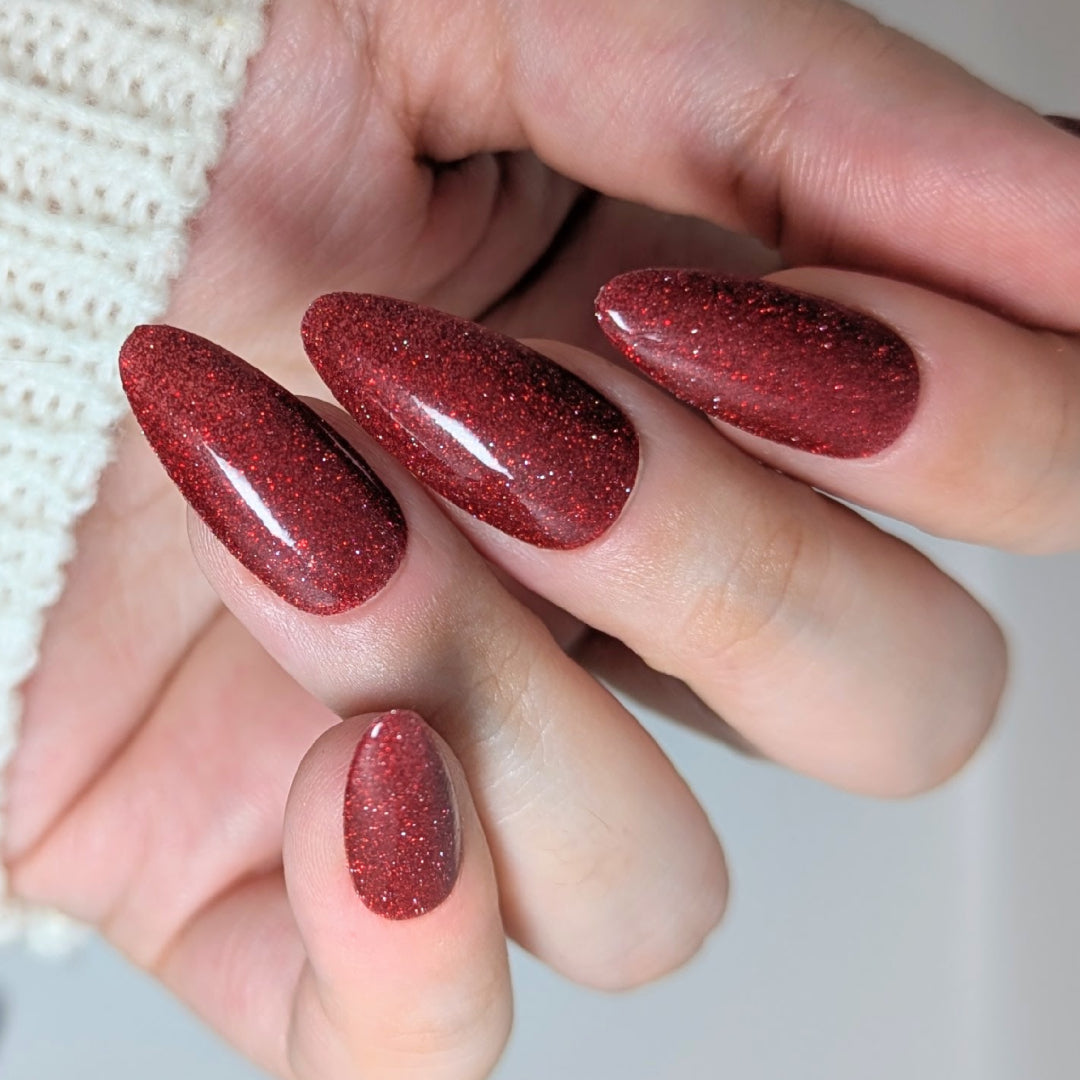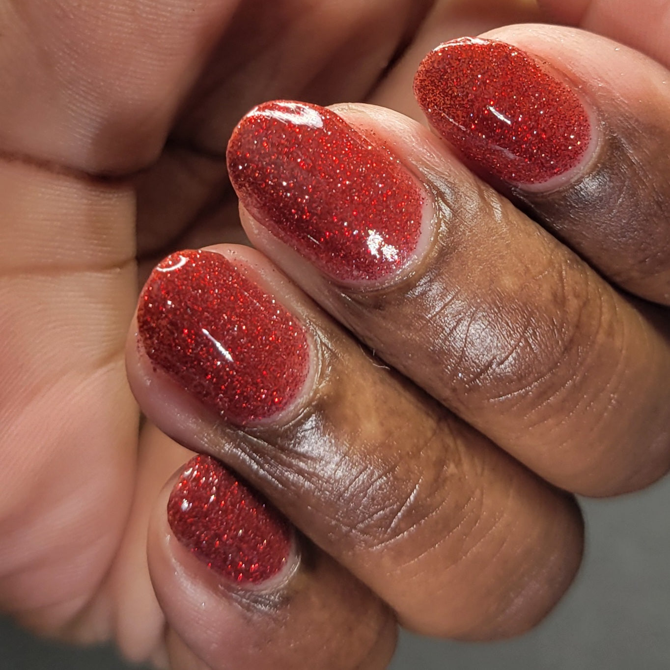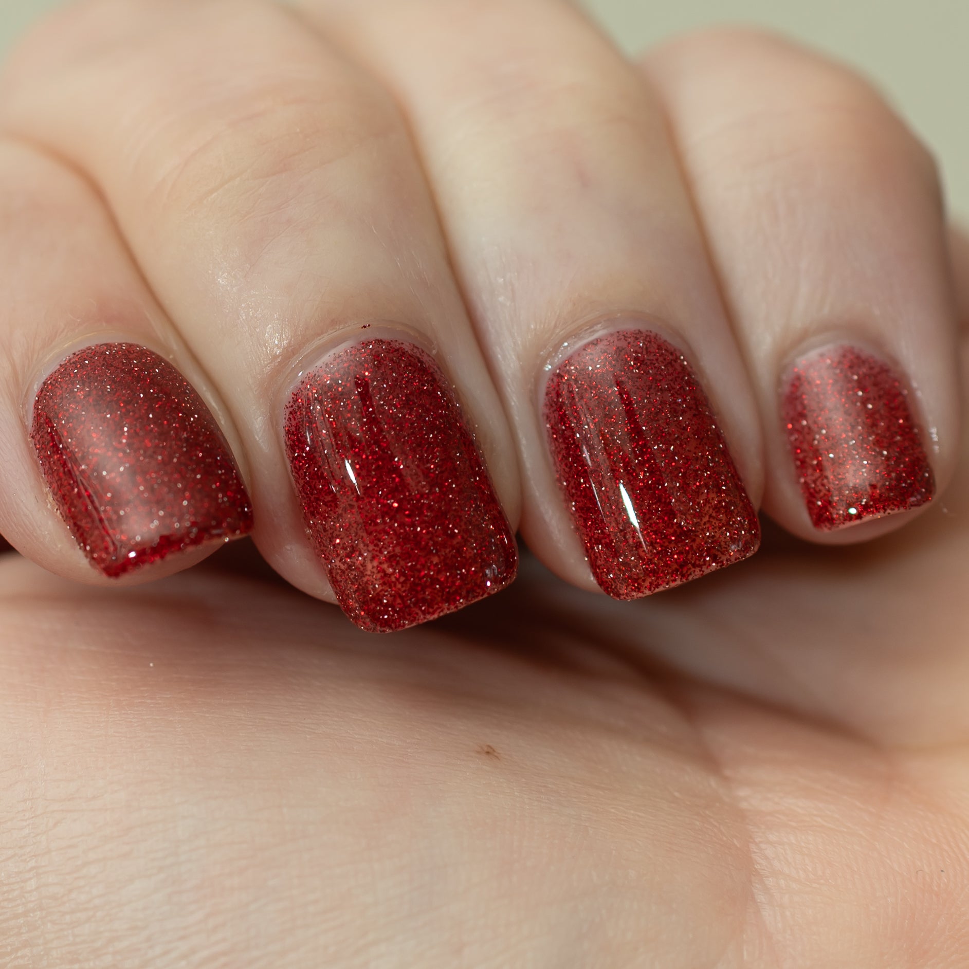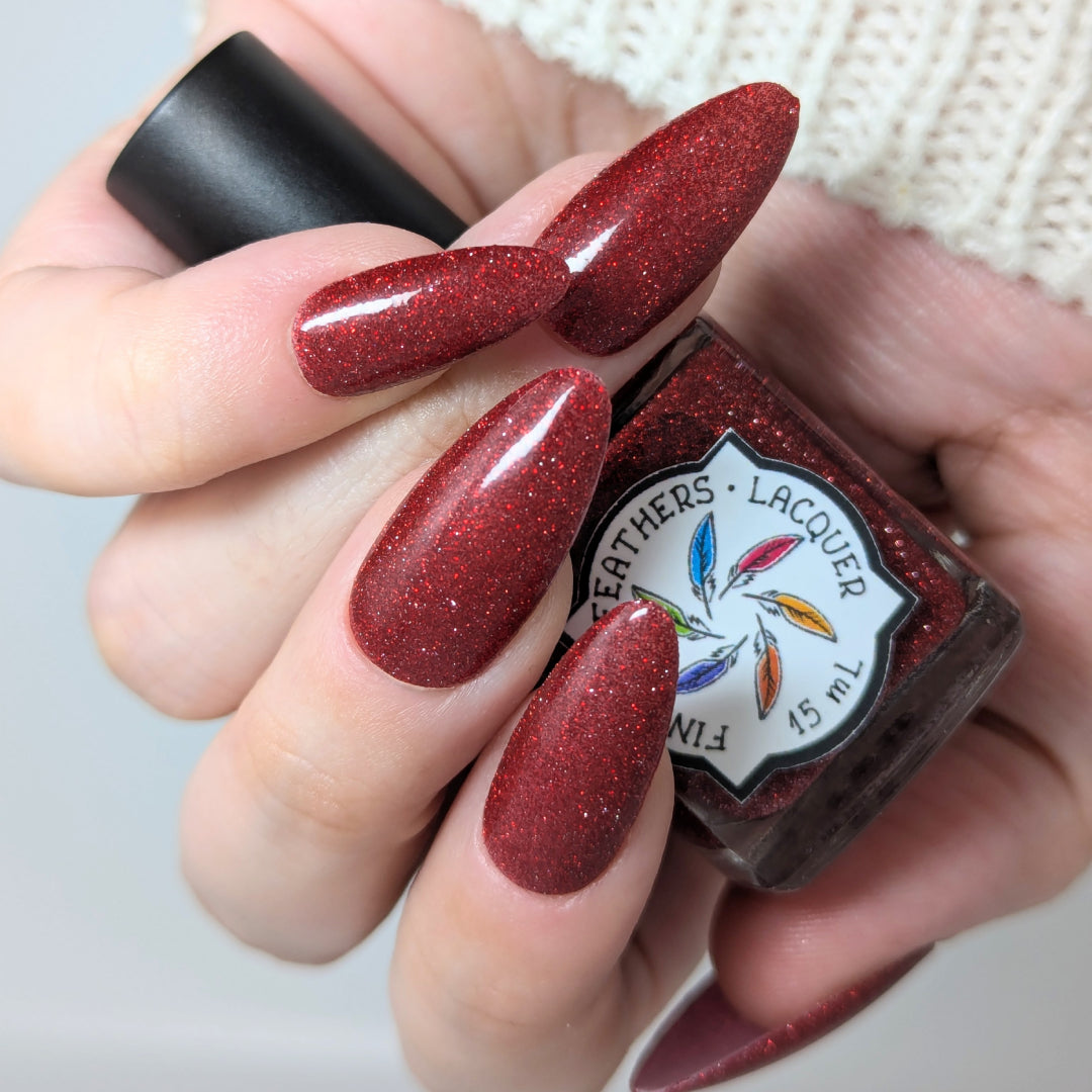 Come On, Idiot, Kiss Her! is a gorgeous garnet red jelly base filled with luxurious mini ruby red metallic and reflective glitters. Reflective glitters by nature are extra "thirsty", and we highly recommend FFL's Serenity Smoothing Top Coat BEFORE topping with FFL's True Tranquility QDTC for a smooth finish.