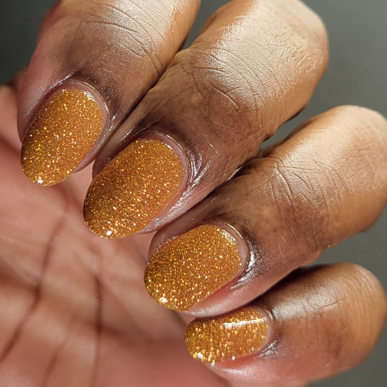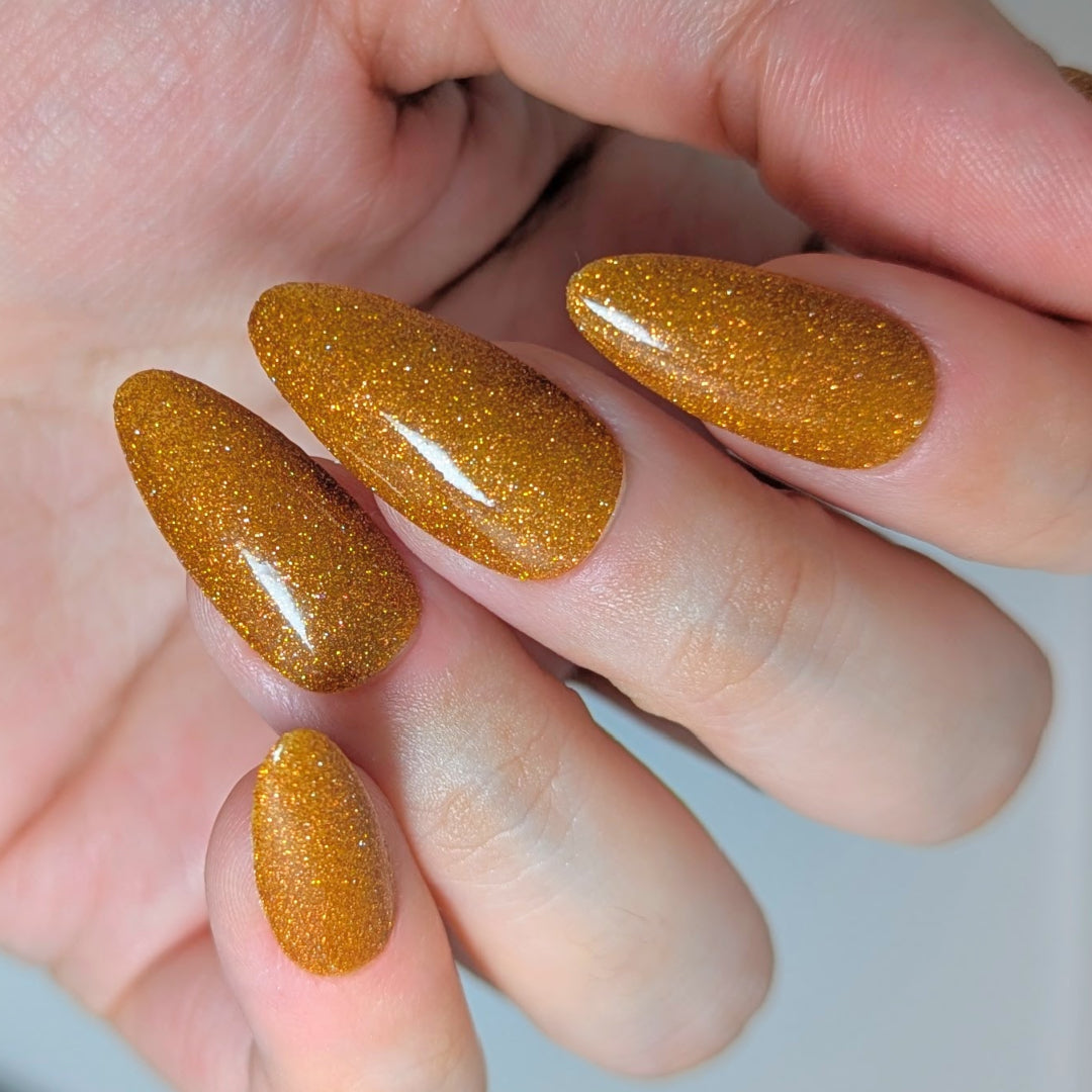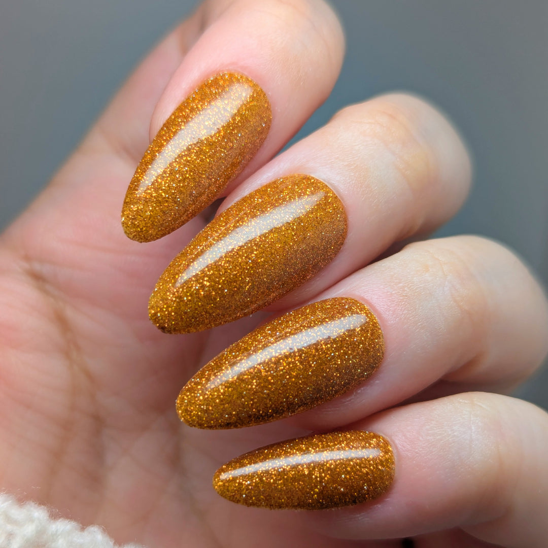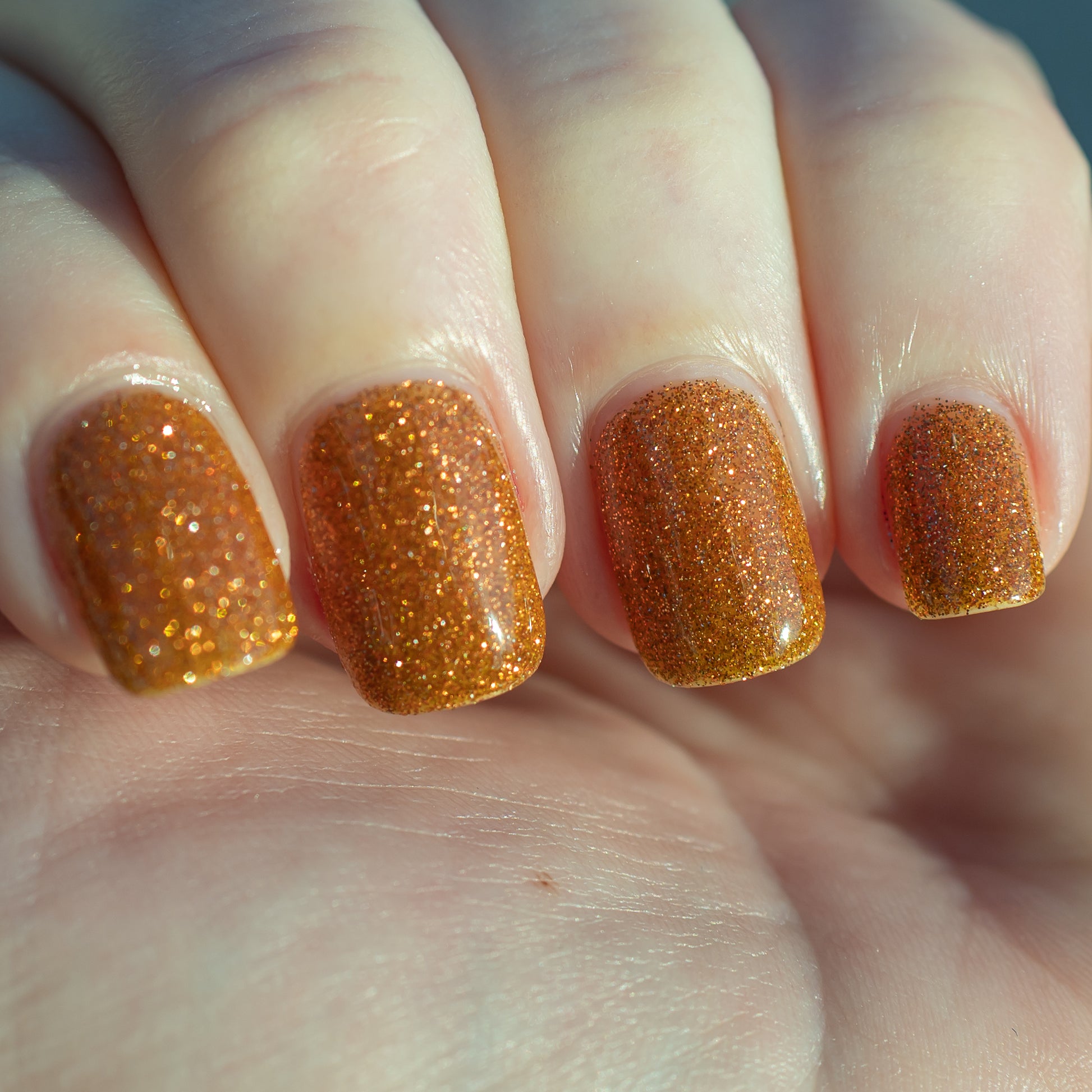 Florence is a warm butterscotch gold jelly base alight with dazzling mini coppery golden metallic and reflective glitters. Reflective glitters by nature are extra "thirsty", and we highly recommend FFL's Serenity Smoothing Top Coat BEFORE topping with FFL's True Tranquility QDTC for a smooth finish.