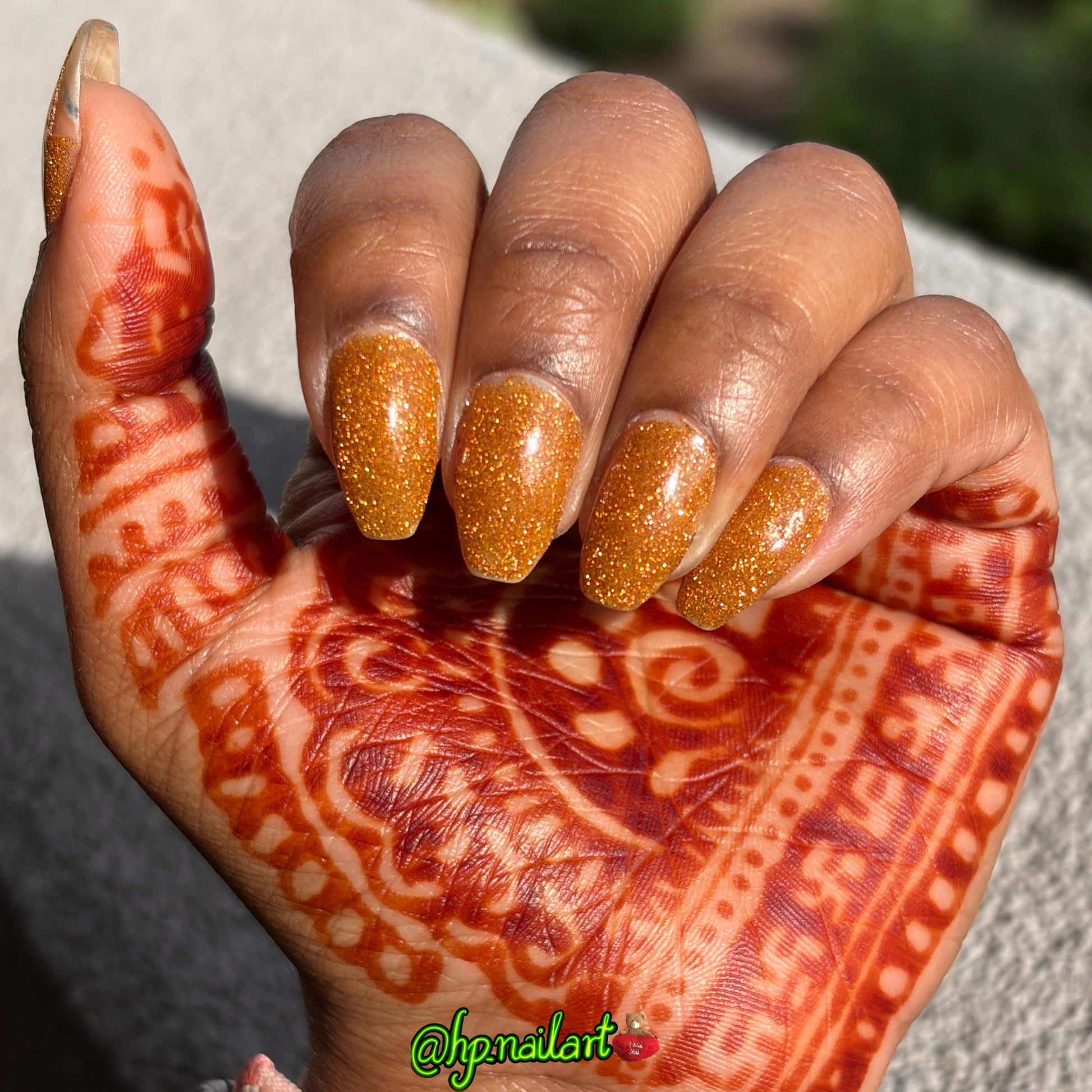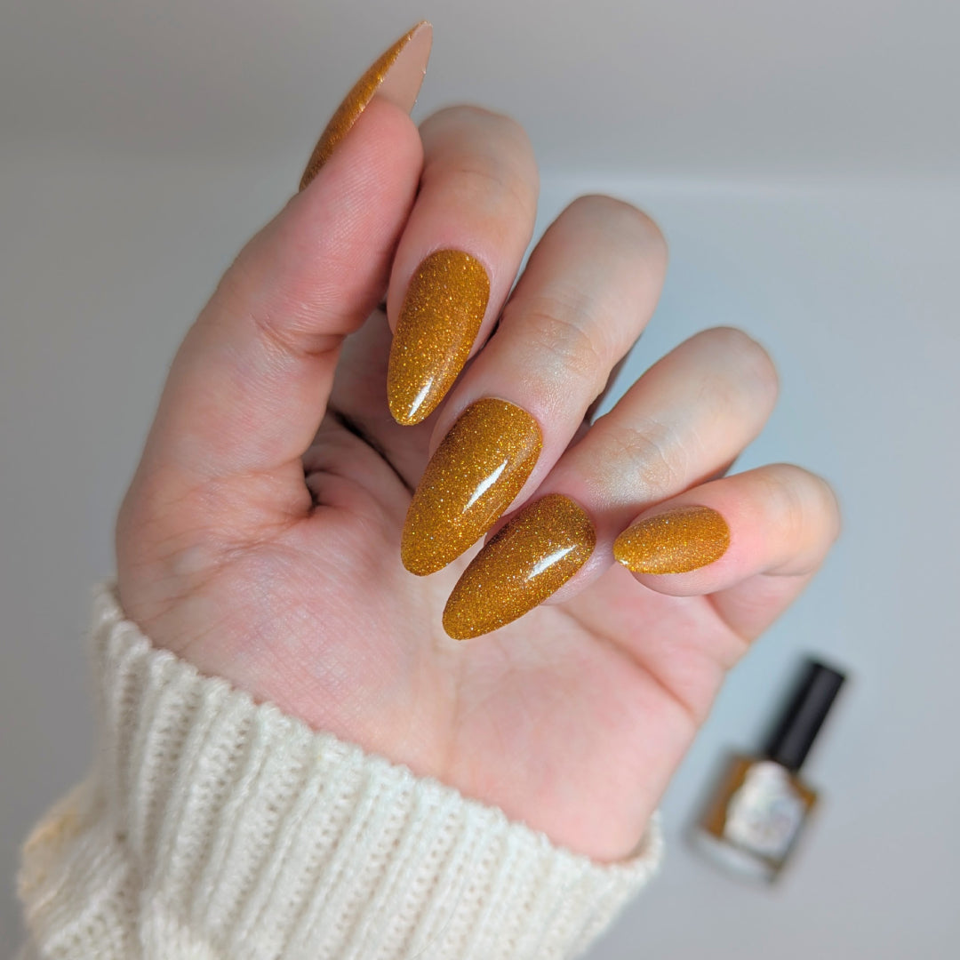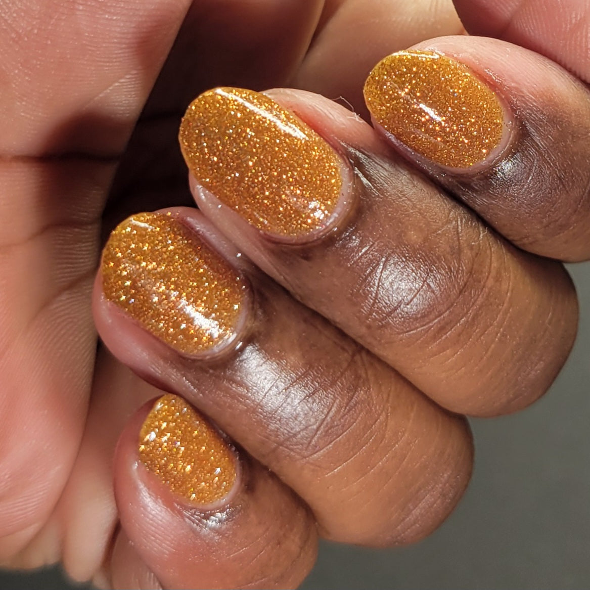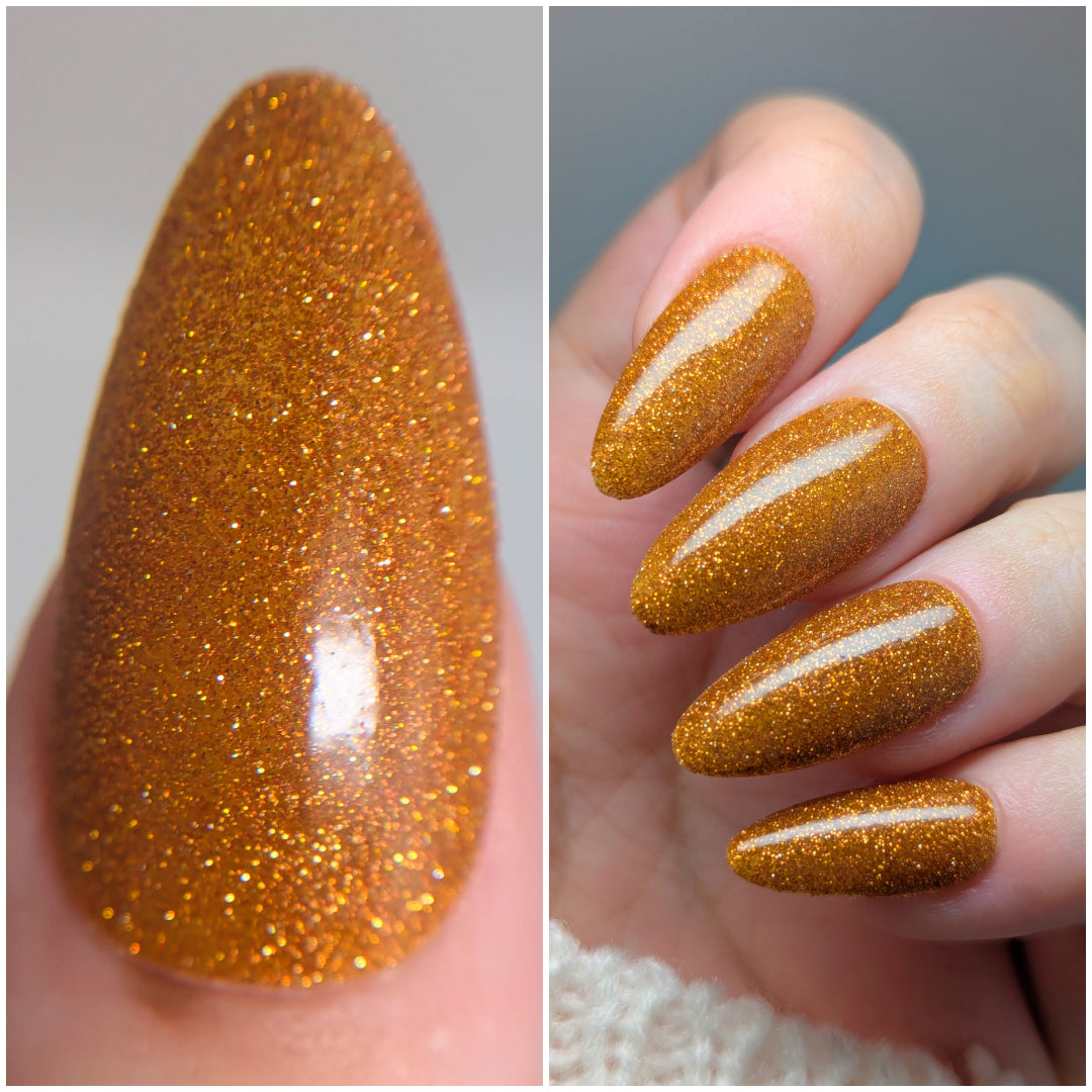 Florence is a warm butterscotch gold jelly base alight with dazzling mini coppery golden metallic and reflective glitters. Reflective glitters by nature are extra "thirsty", and we highly recommend FFL's Serenity Smoothing Top Coat BEFORE topping with FFL's True Tranquility QDTC for a smooth finish.