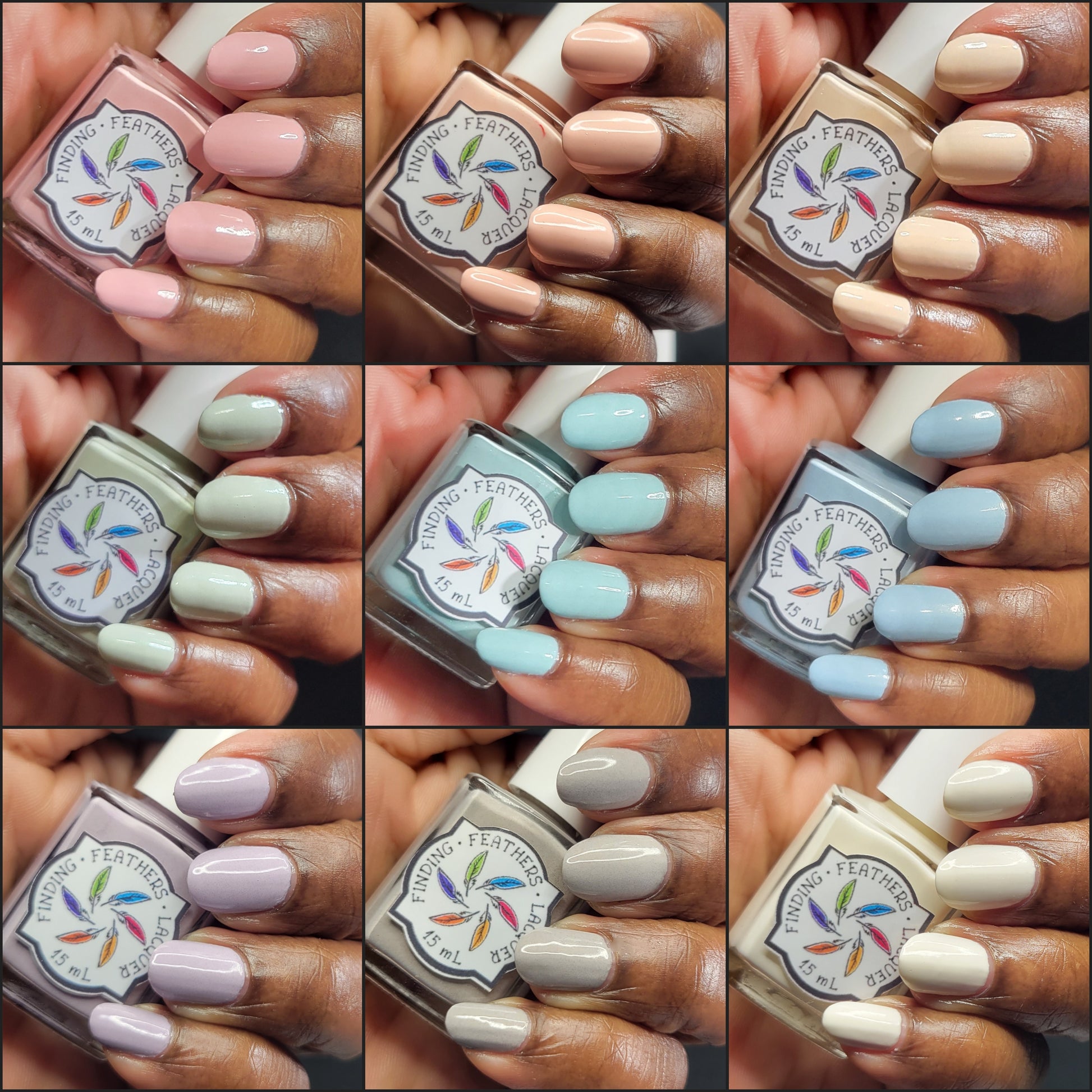 All swatches are shown in 2-3 coats and topped with FFL's True Tranquility Top Coat. Heartfelt thanks to our amazing swatchers: