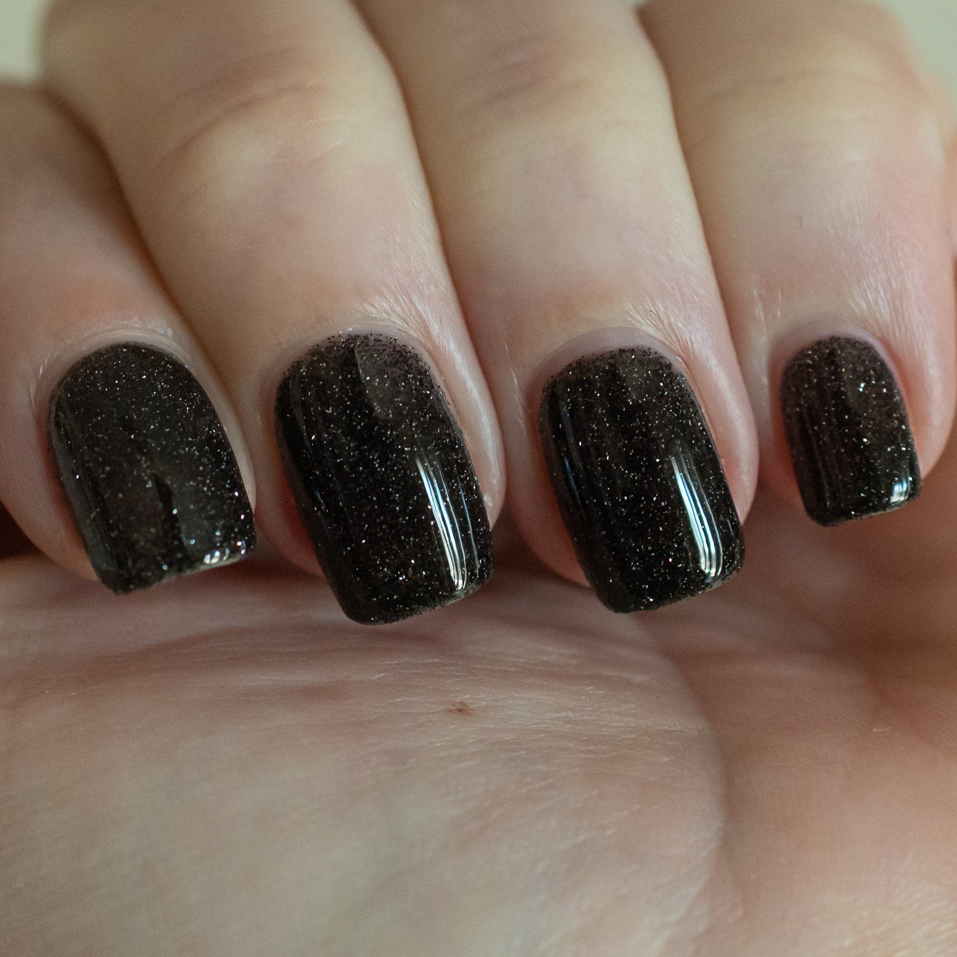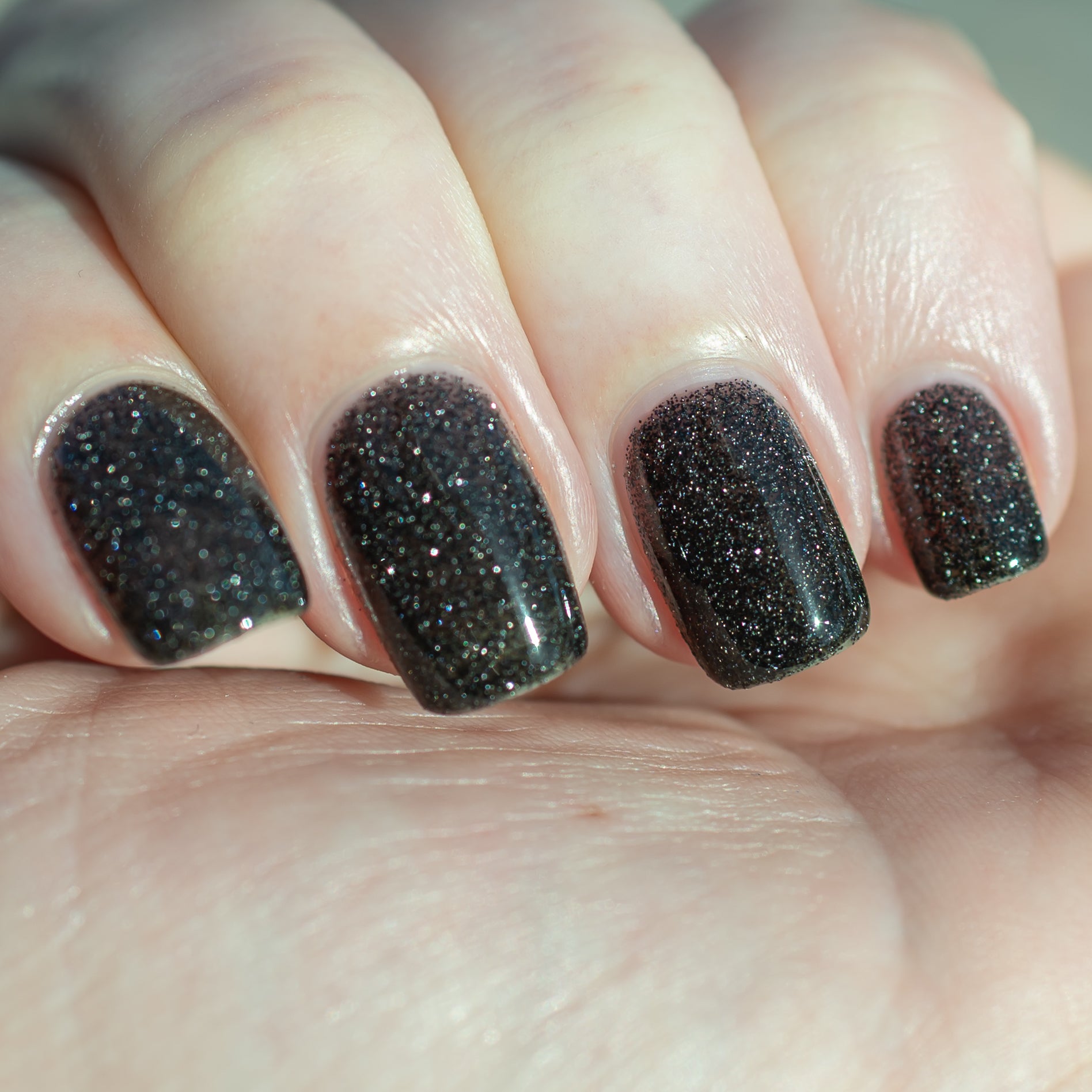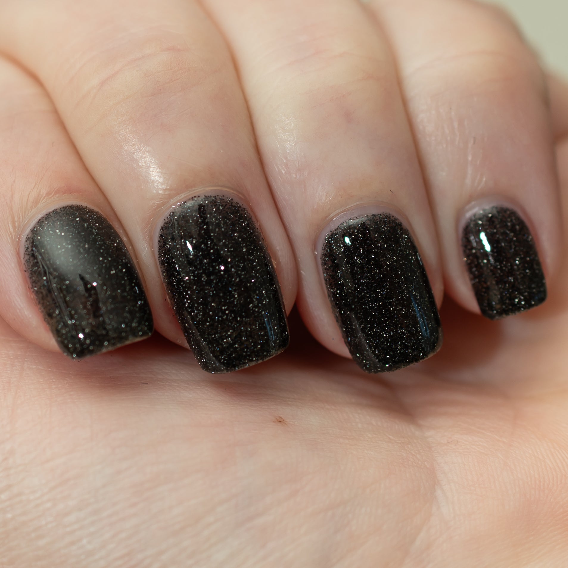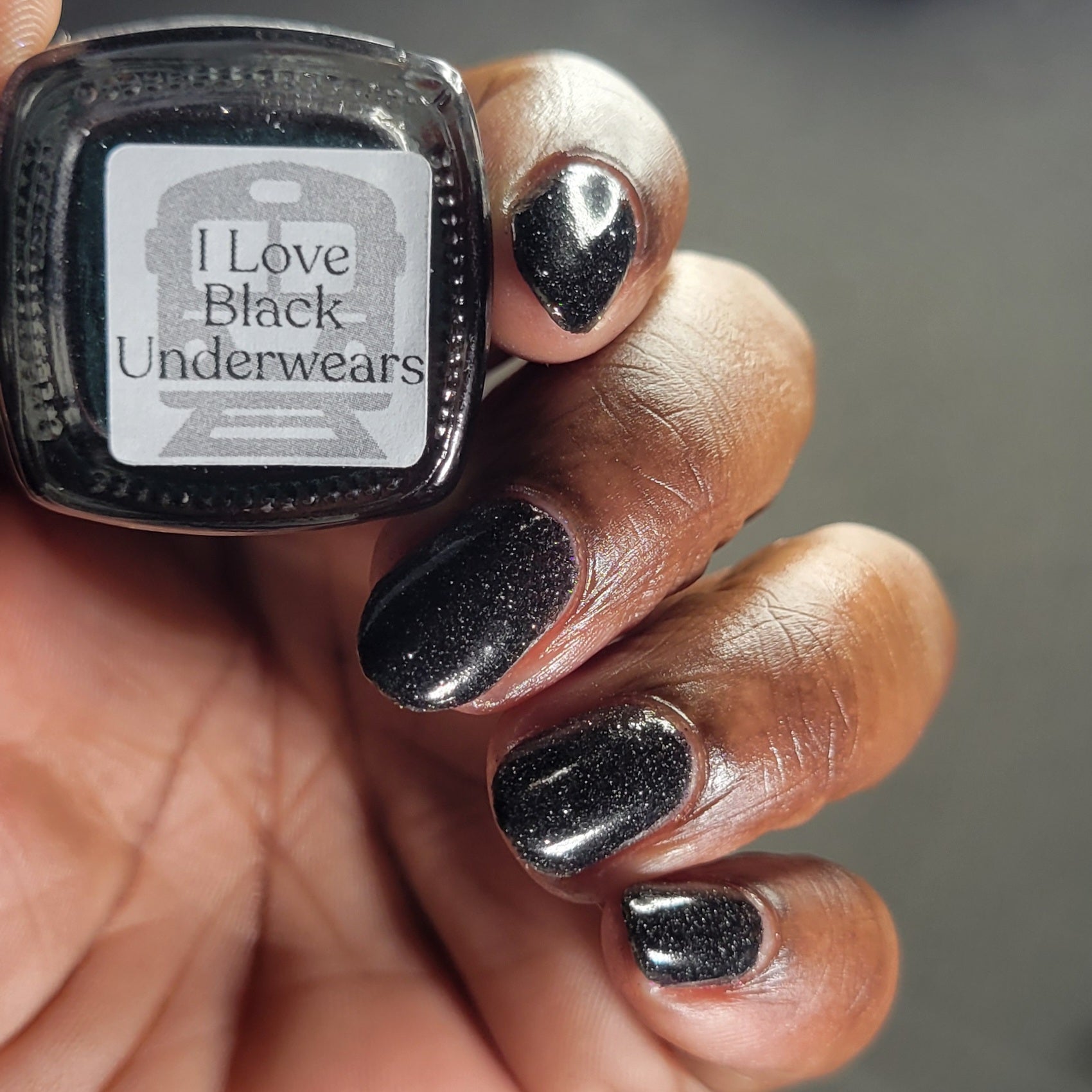 I Love Black Underwears is an onyx jelly base with tantalizing mini black metallic and reflective glitters. Reflective glitters by nature are extra "thirsty", and we highly recommend FFL's Serenity Smoothing Top Coat BEFORE topping with FFL's True Tranquility QDTC for a smooth finish.