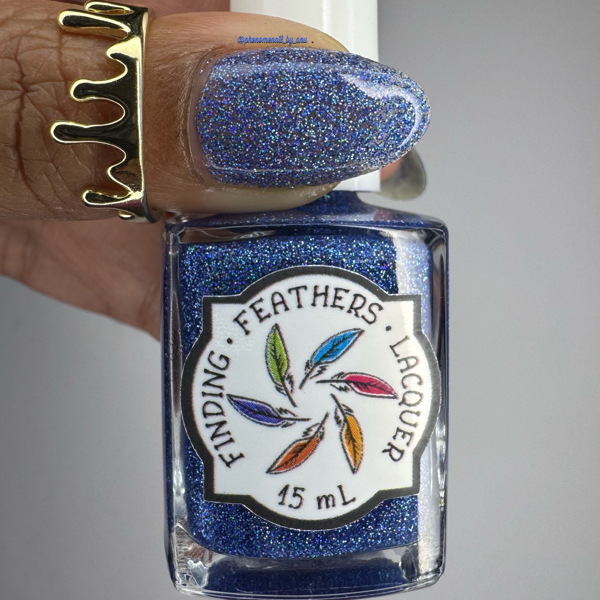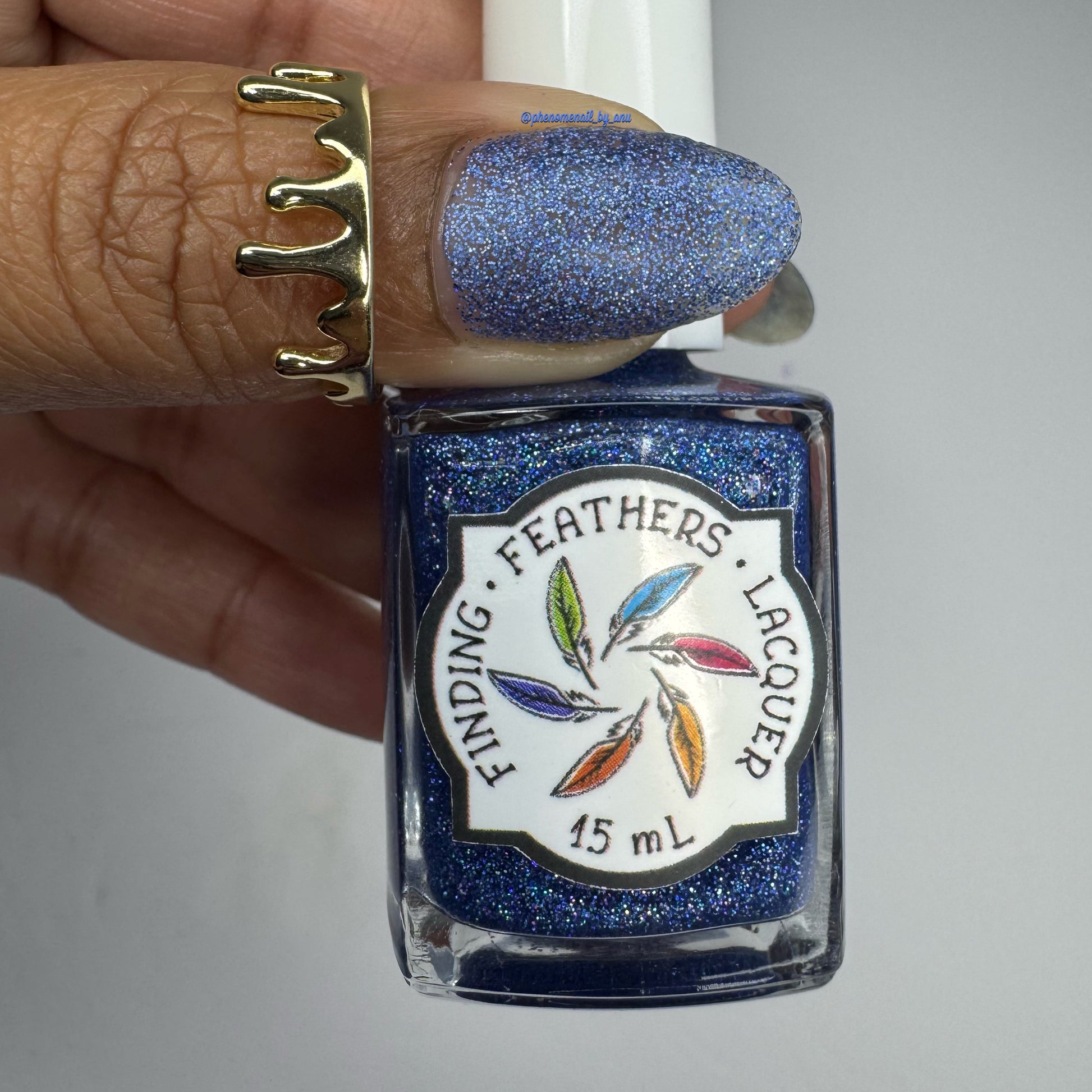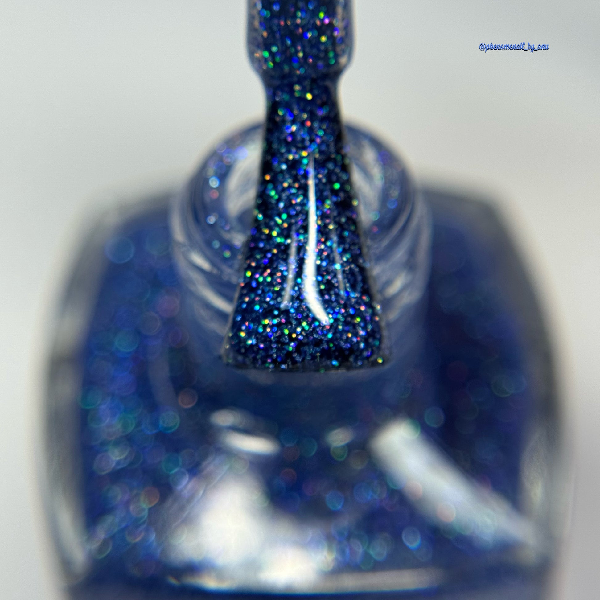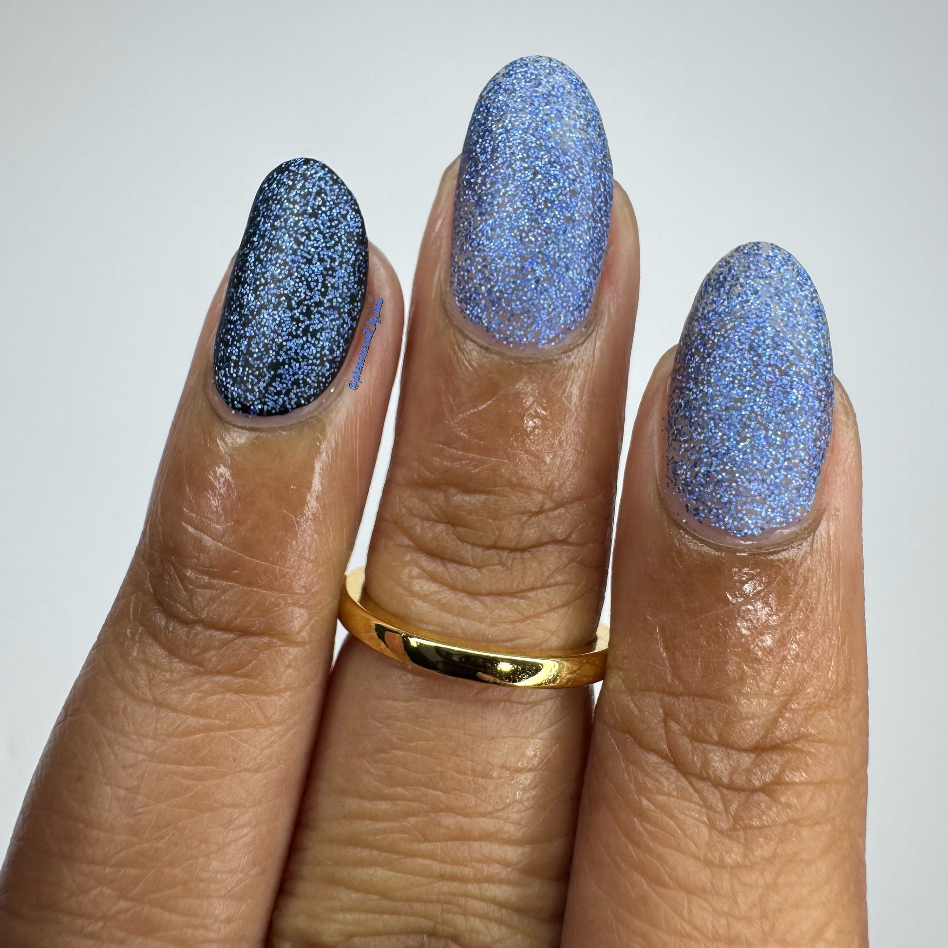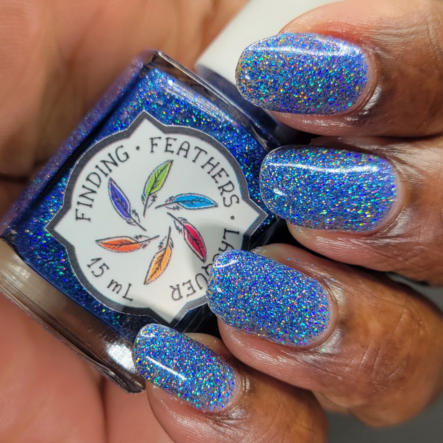 I'm the Rocket Queen is an Egyptian blue mini holo glitter polish, inspired by Pharah, a lesbian Egyptian/Canadian security chief from the video game, Overwatch.