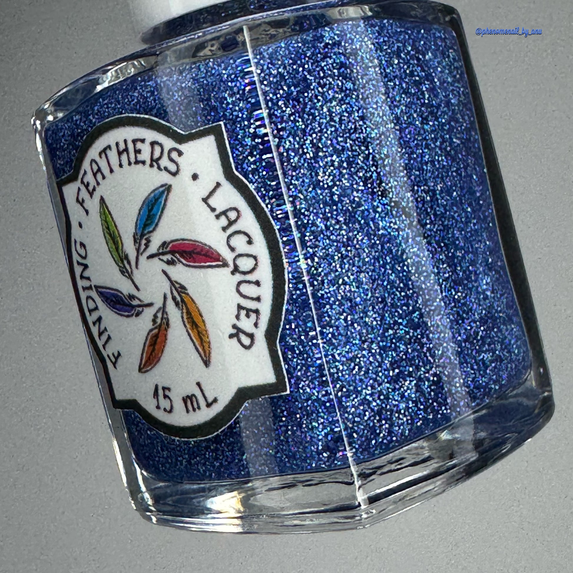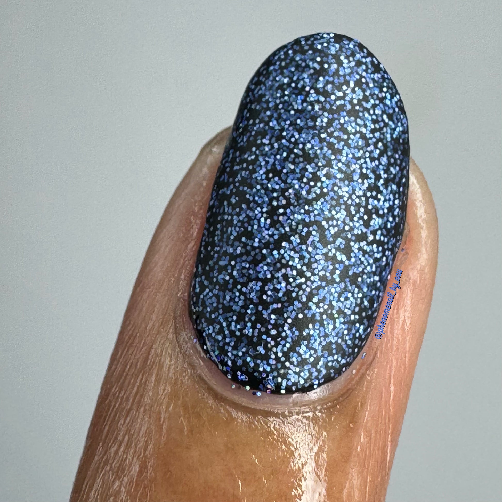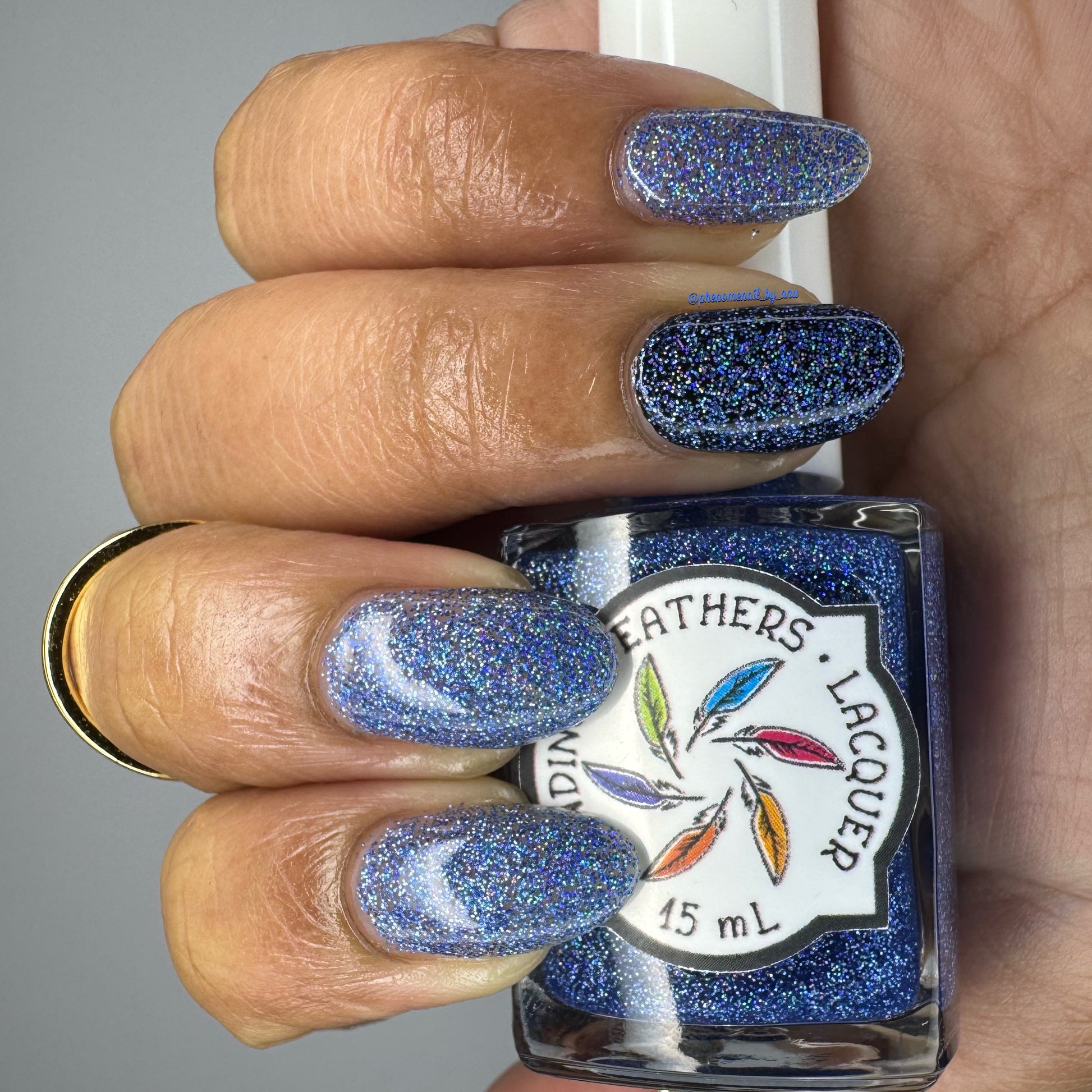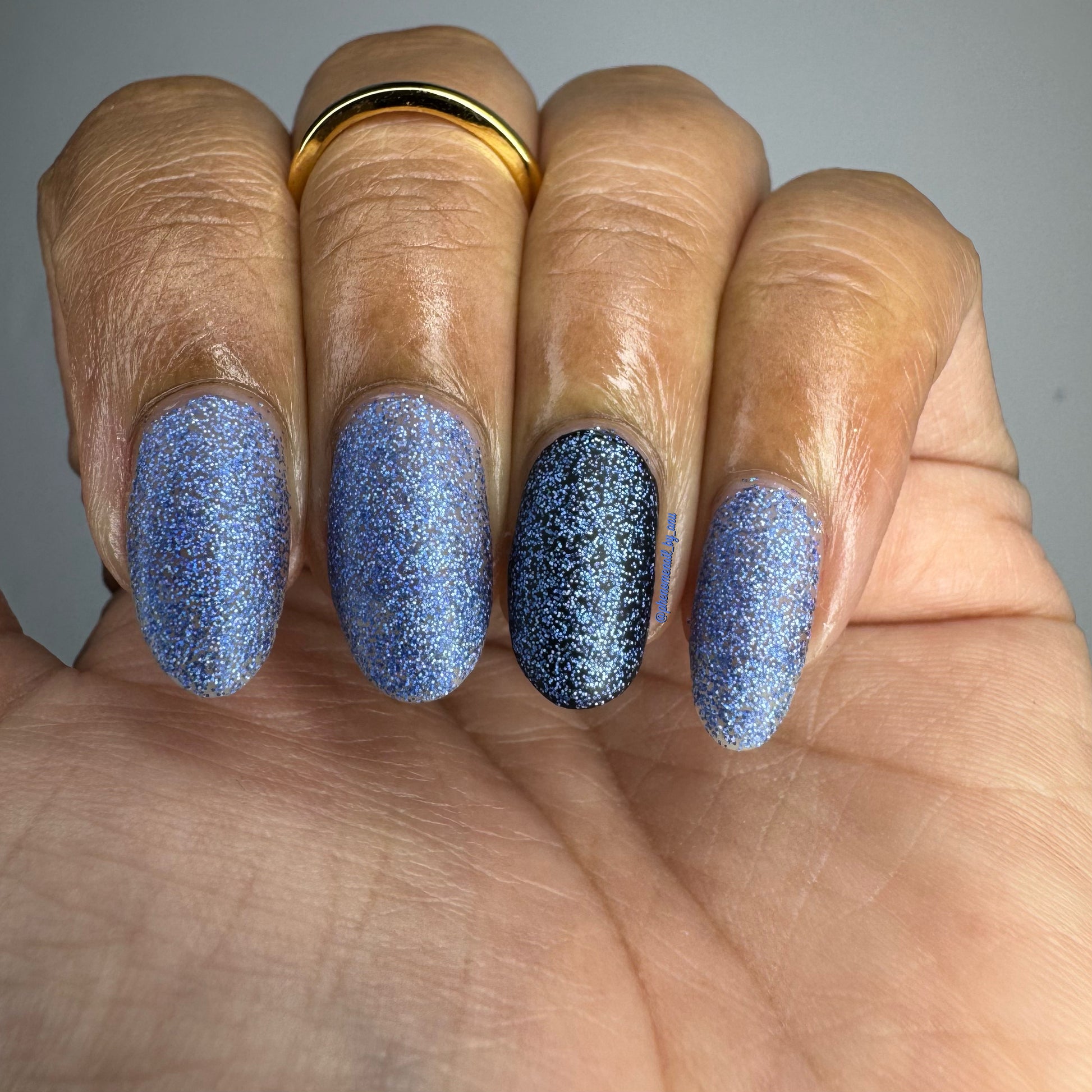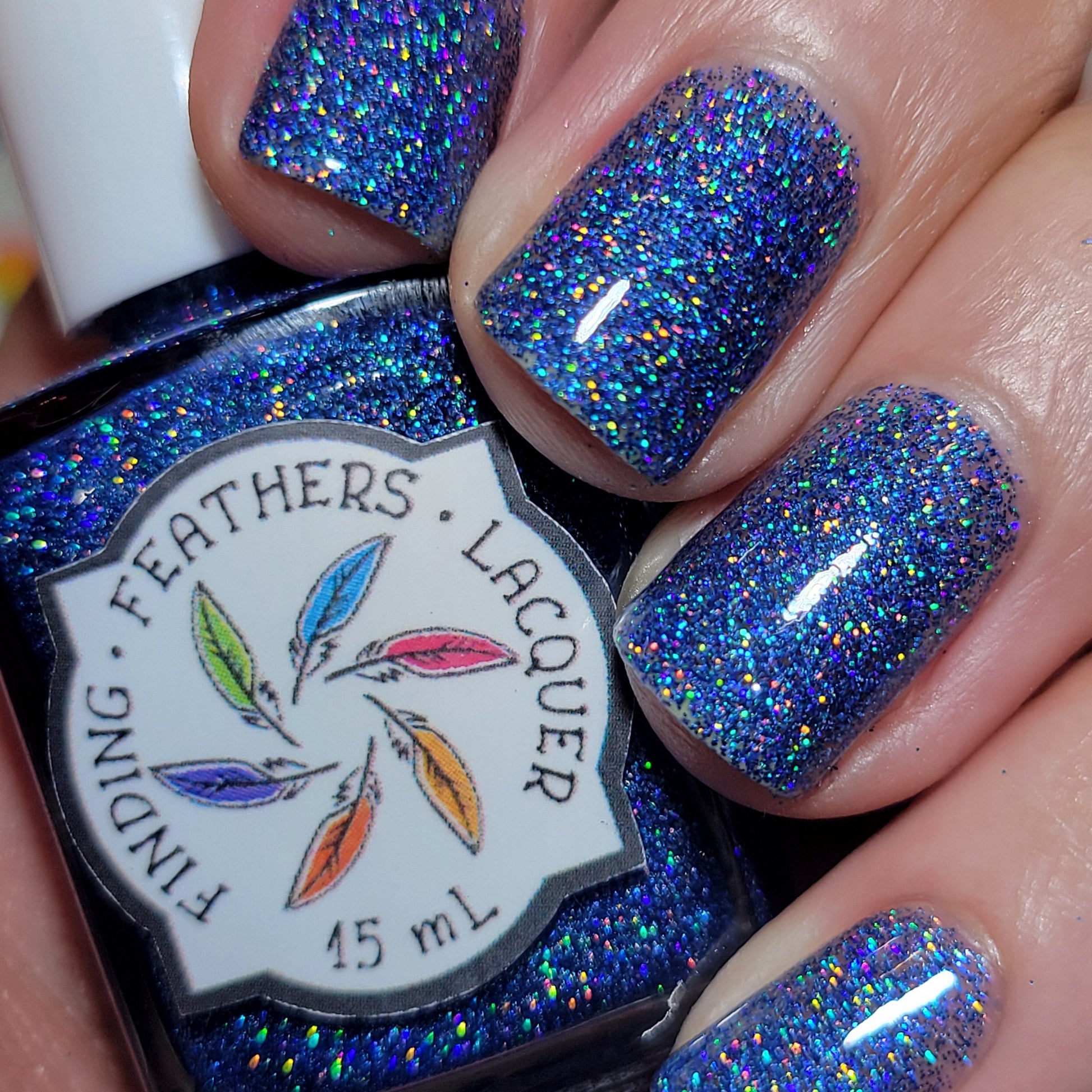I'm the Rocket Queen is an Egyptian blue mini holo glitter polish, inspired by Pharah, a lesbian Egyptian/Canadian security chief from the video game, Overwatch.