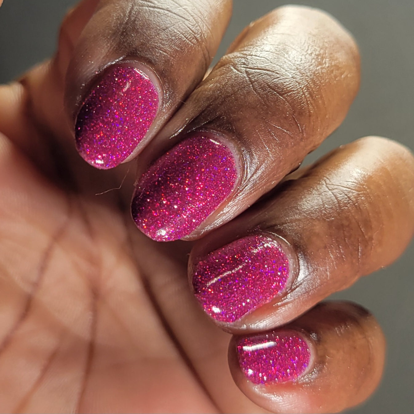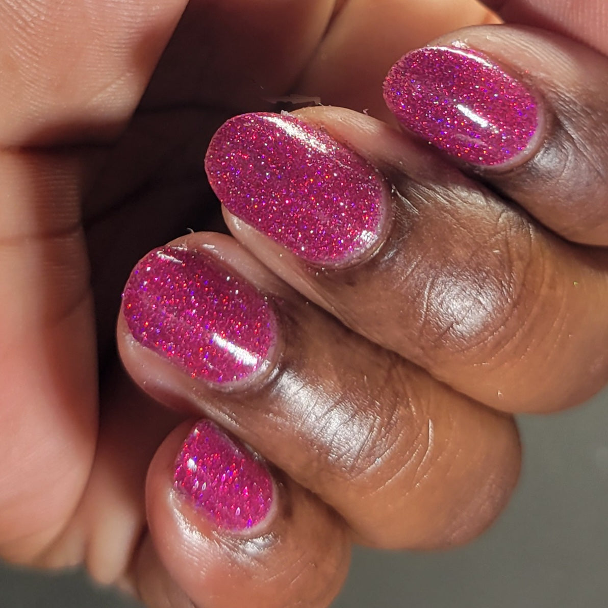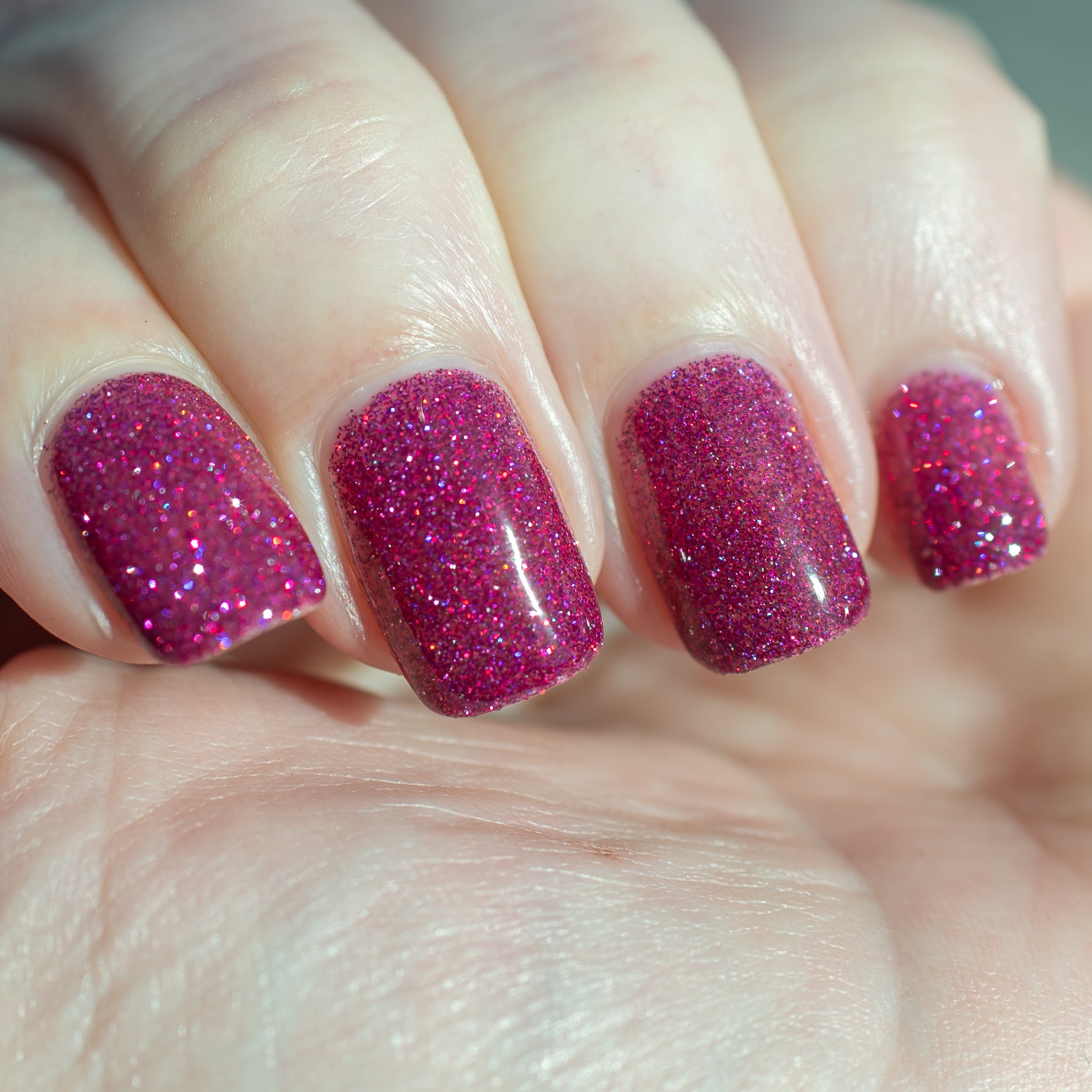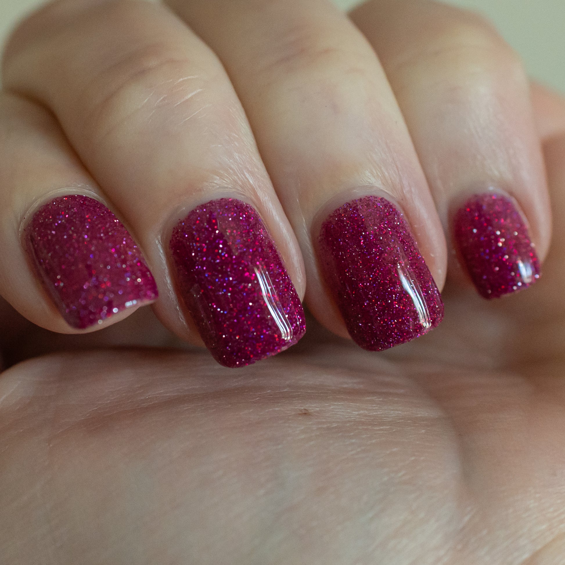 Not That One. THAT One. is a marvelous magenta jelly base bedazzled with mini fuchsia holo and reflective glitters. Reflective glitters by nature are extra "thirsty", and we highly recommend FFL's Serenity Smoothing Top Coat BEFORE topping with FFL's True Tranquility QDTC for a smooth finish.