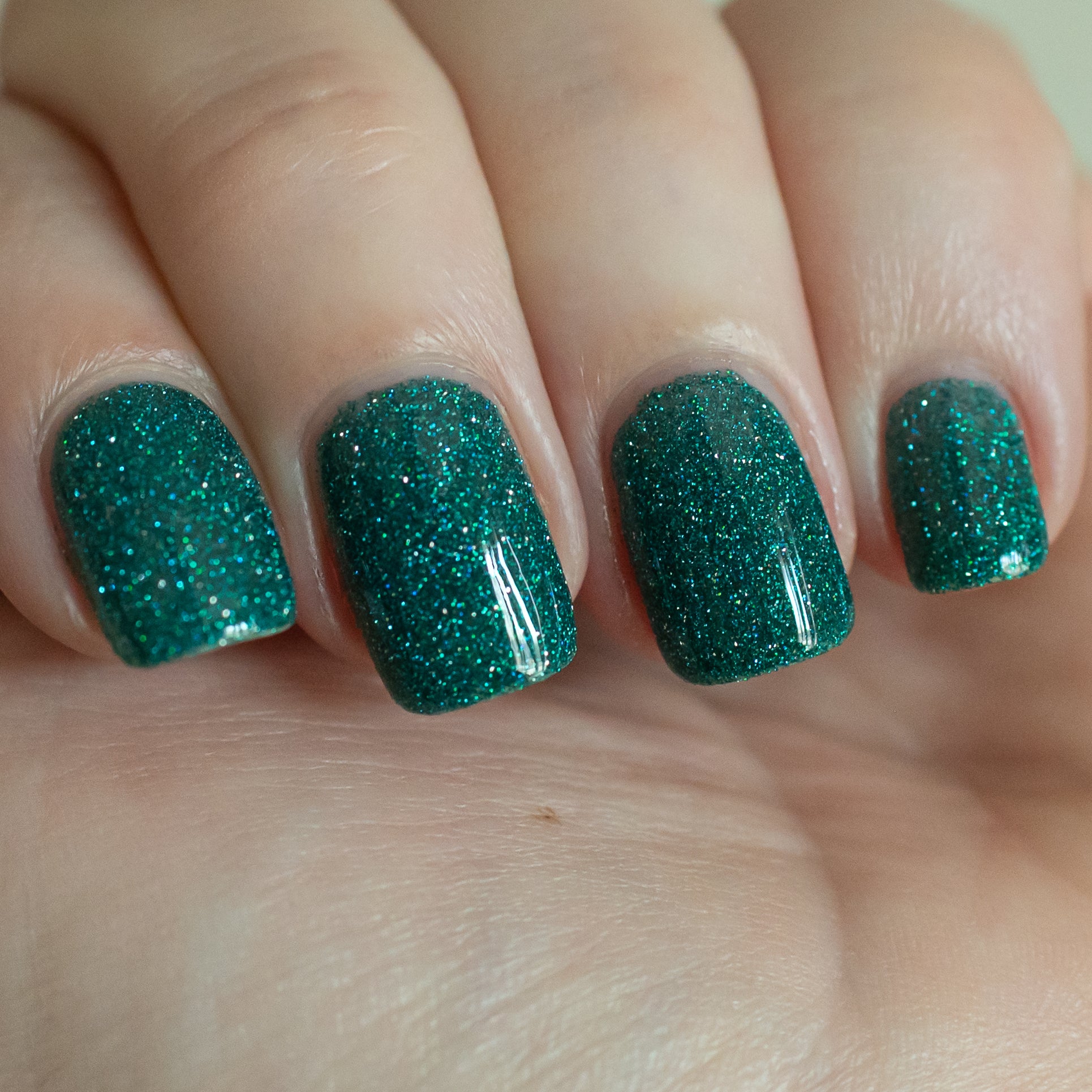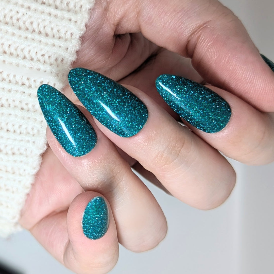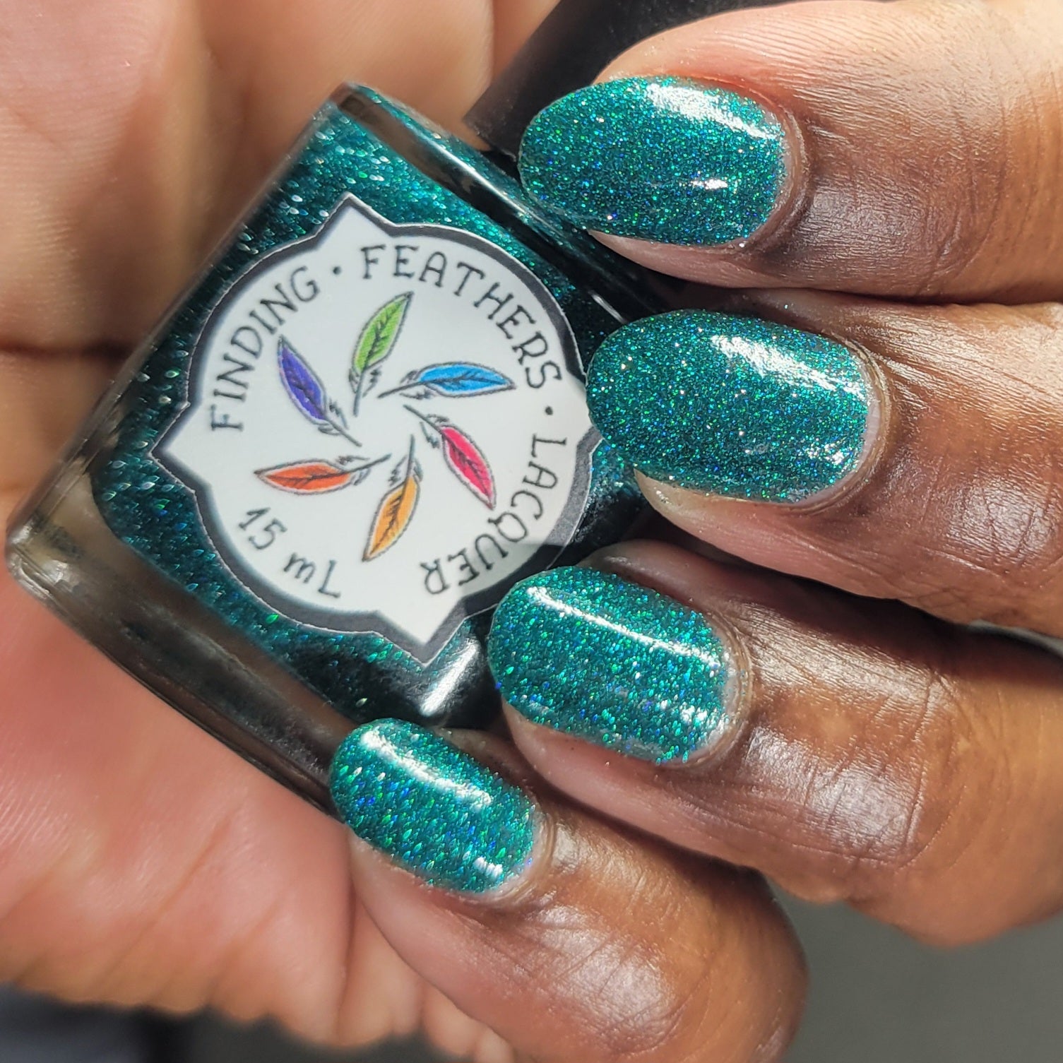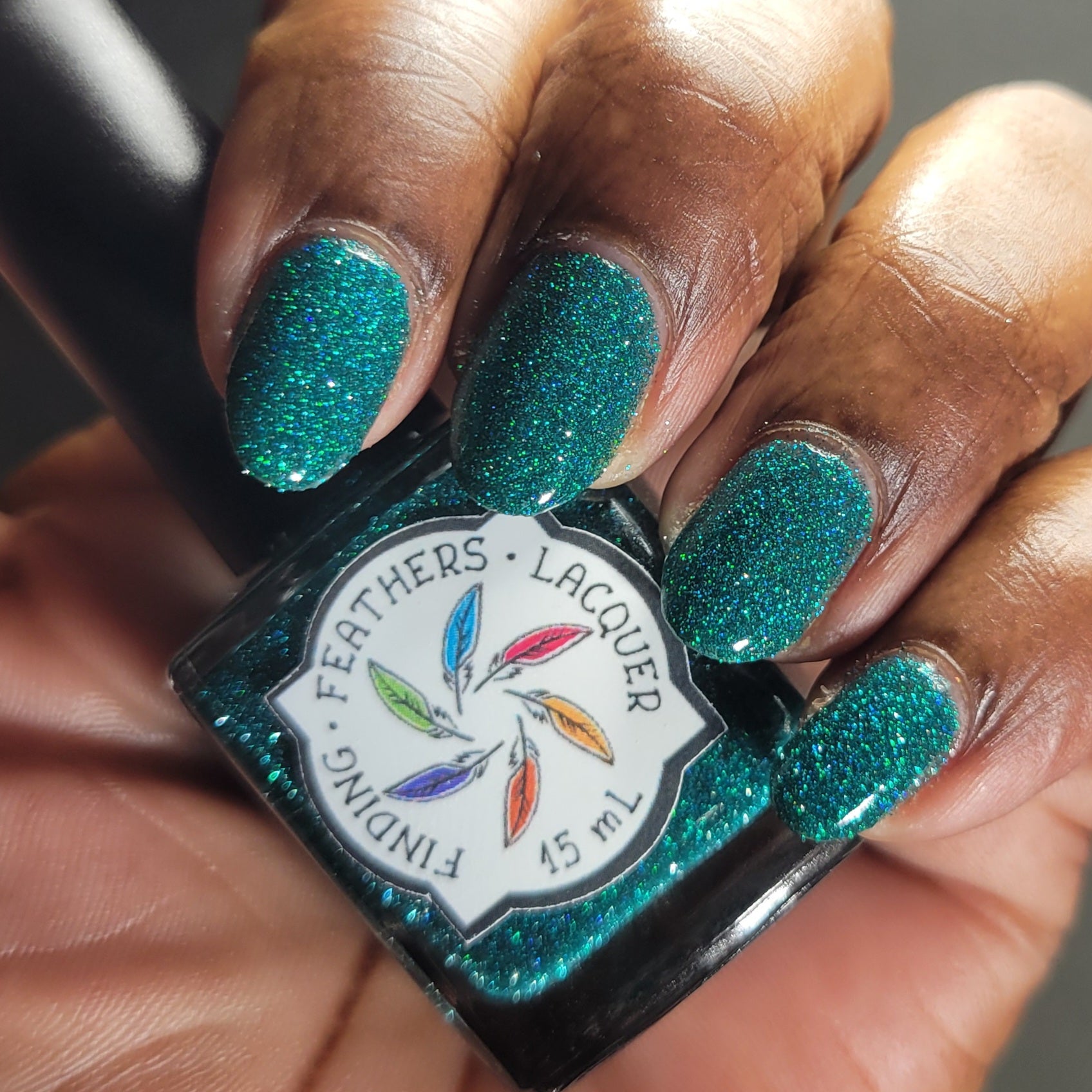 Someone to Laugh With is a deep sea green jelly base adorned with mini blue-green holo and reflective glitters. Reflective glitters by nature are extra "thirsty", and we highly recommend FFL's Serenity Smoothing Top Coat BEFORE topping with FFL's True Tranquility QDTC for a smooth finish.