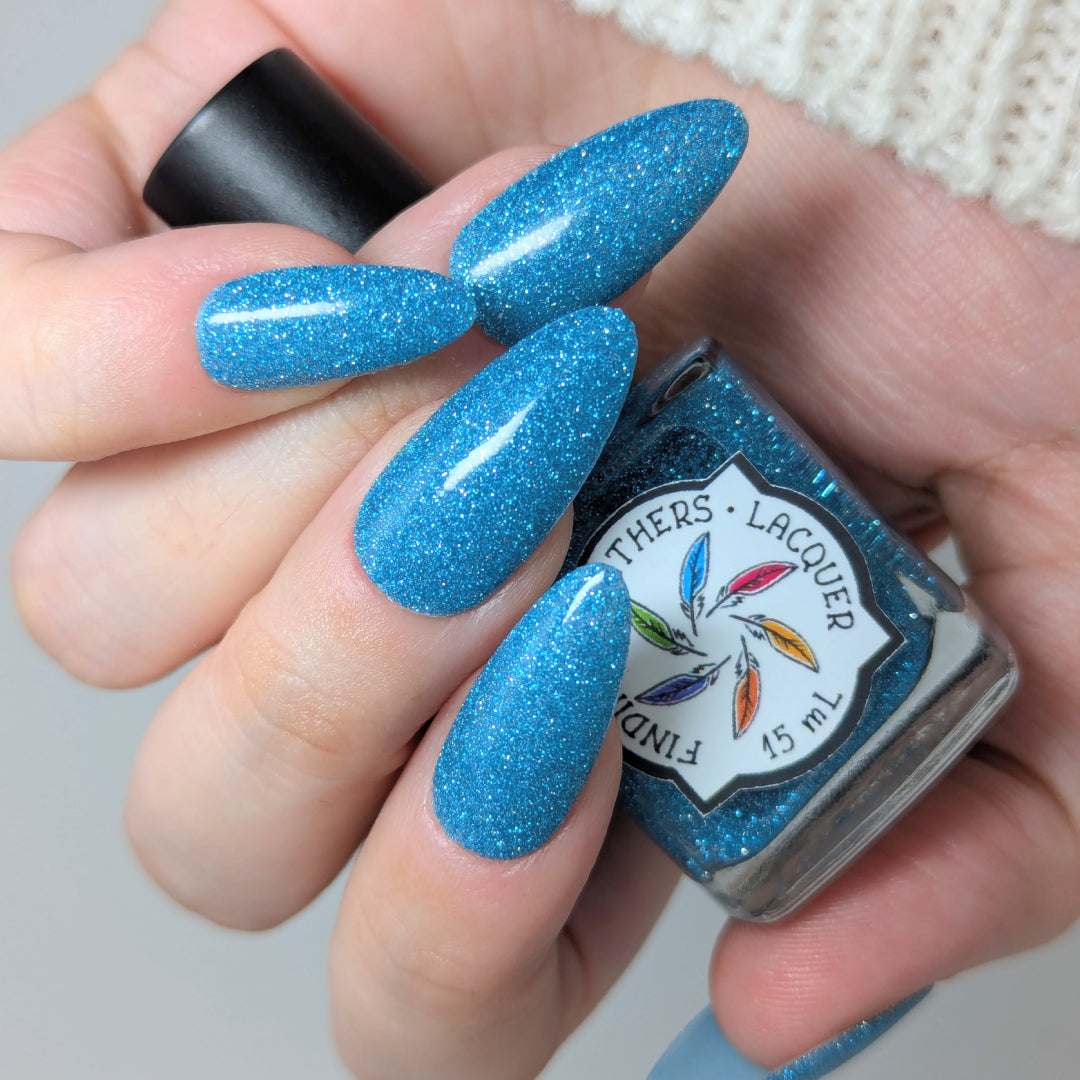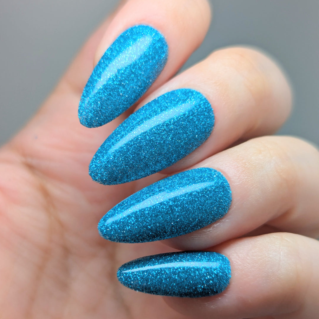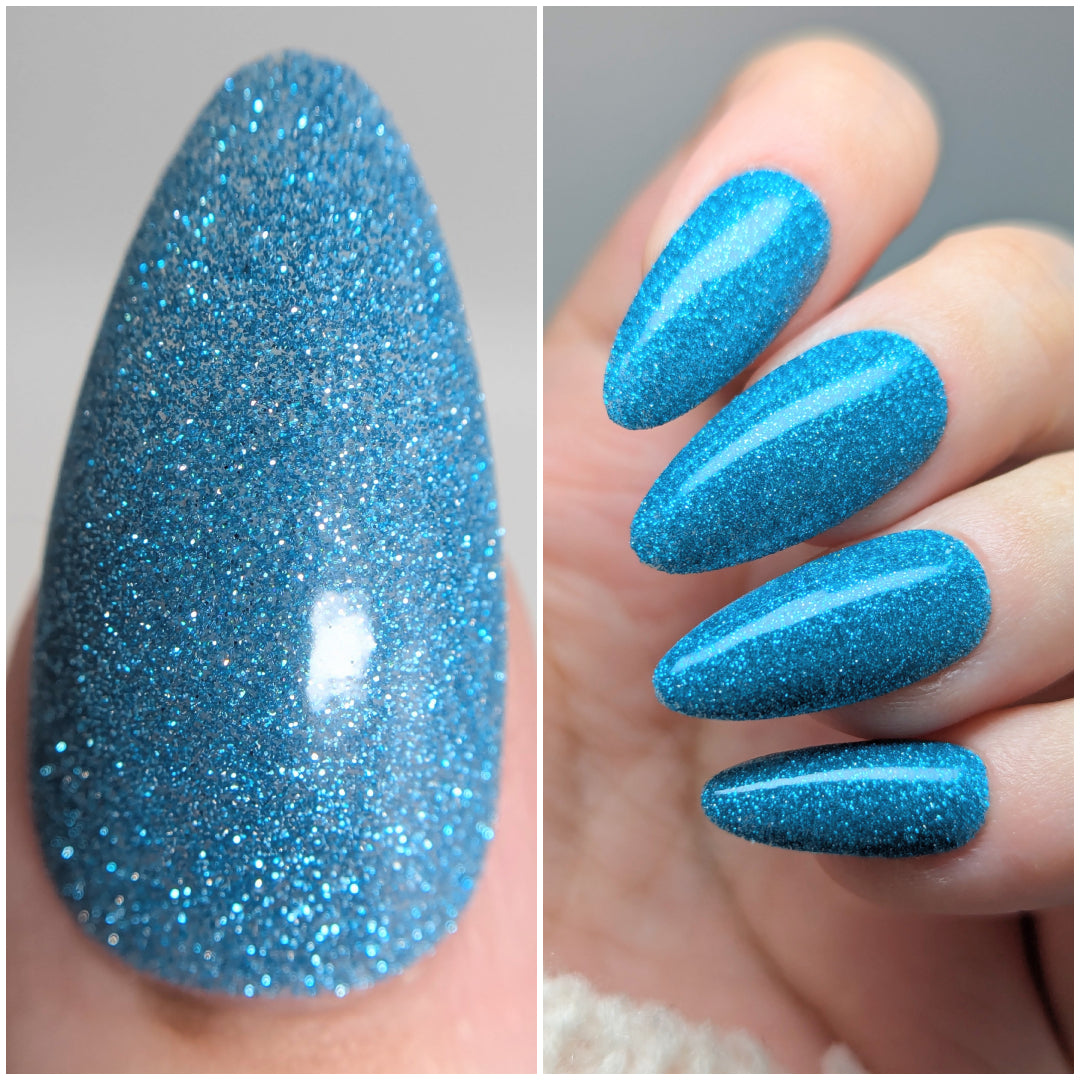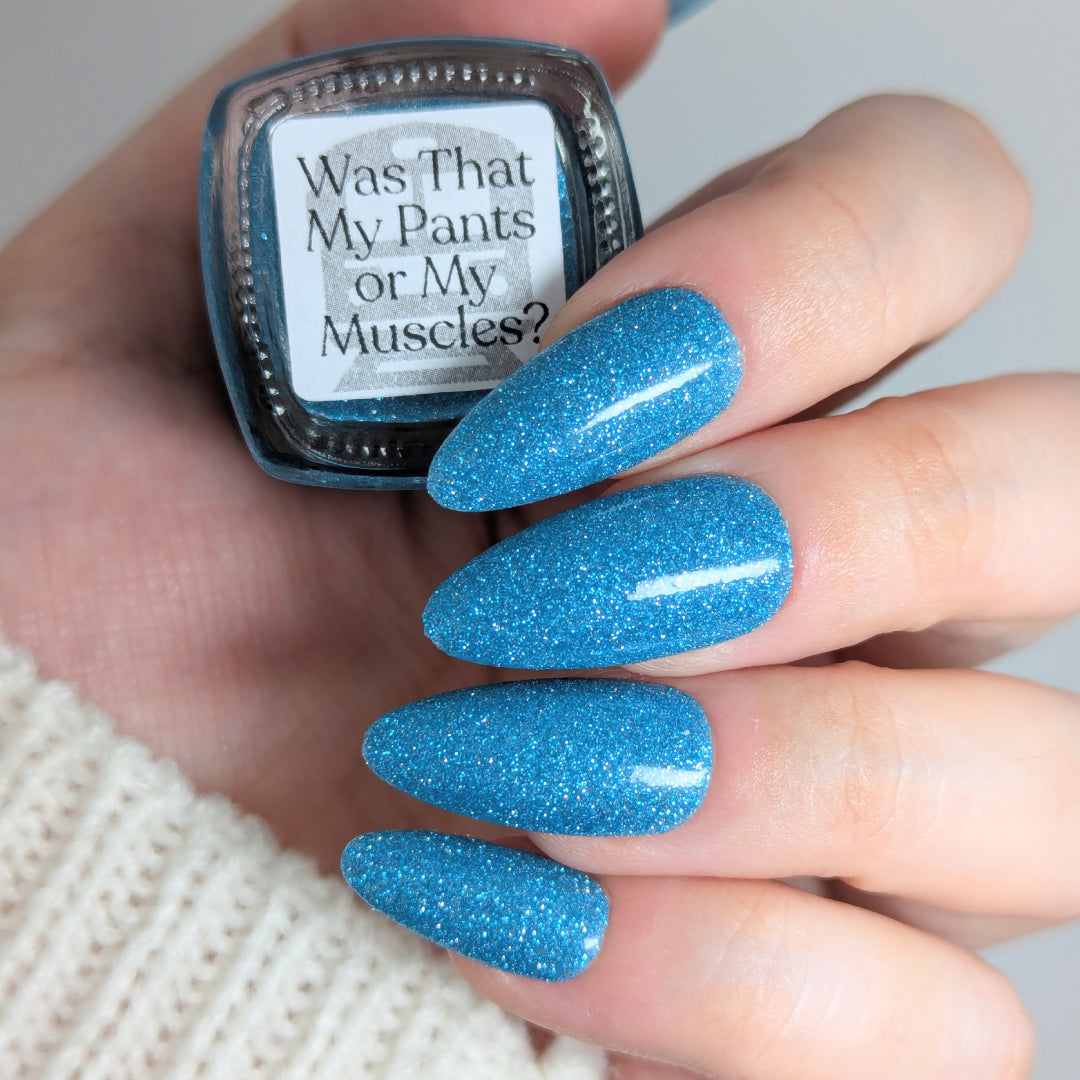 Was That My Pants or My Muscles? is a clear based polish dancing with mini icy aquamarine metallic and reflective glitters. Reflective glitters by nature are extra "thirsty", and we highly recommend FFL's Serenity Smoothing Top Coat BEFORE topping with FFL's True Tranquility QDTC for a smooth finish.