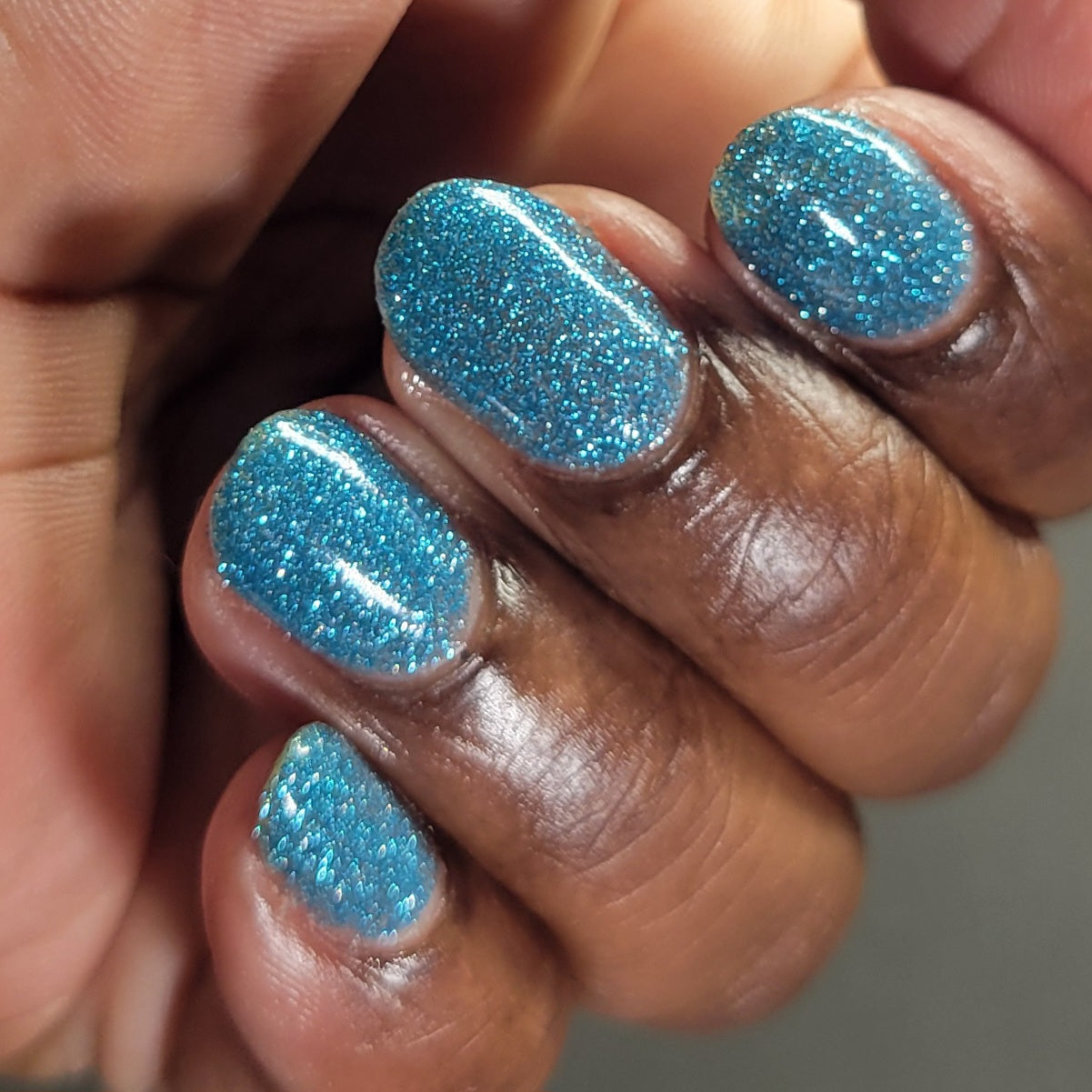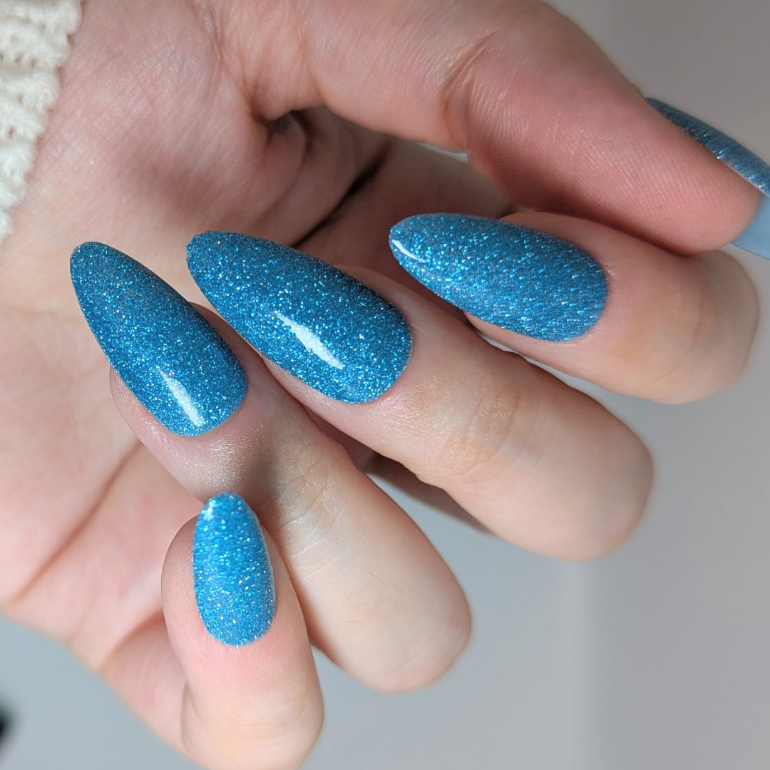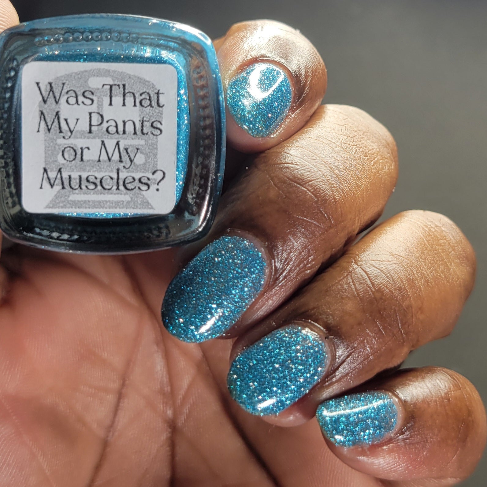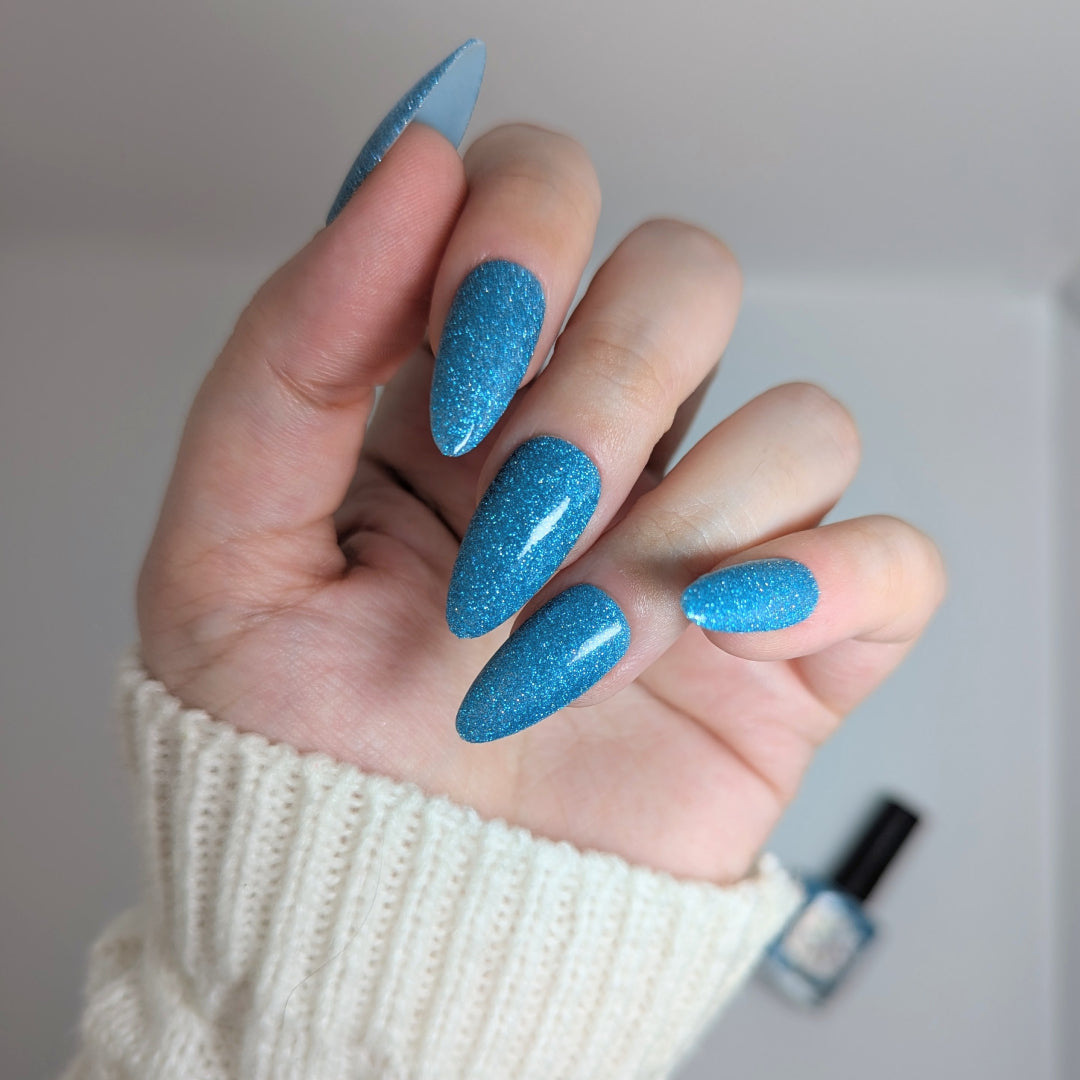 Was That My Pants or My Muscles? is a clear based polish dancing with mini icy aquamarine metallic and reflective glitters. Reflective glitters by nature are extra "thirsty", and we highly recommend FFL's Serenity Smoothing Top Coat BEFORE topping with FFL's True Tranquility QDTC for a smooth finish.